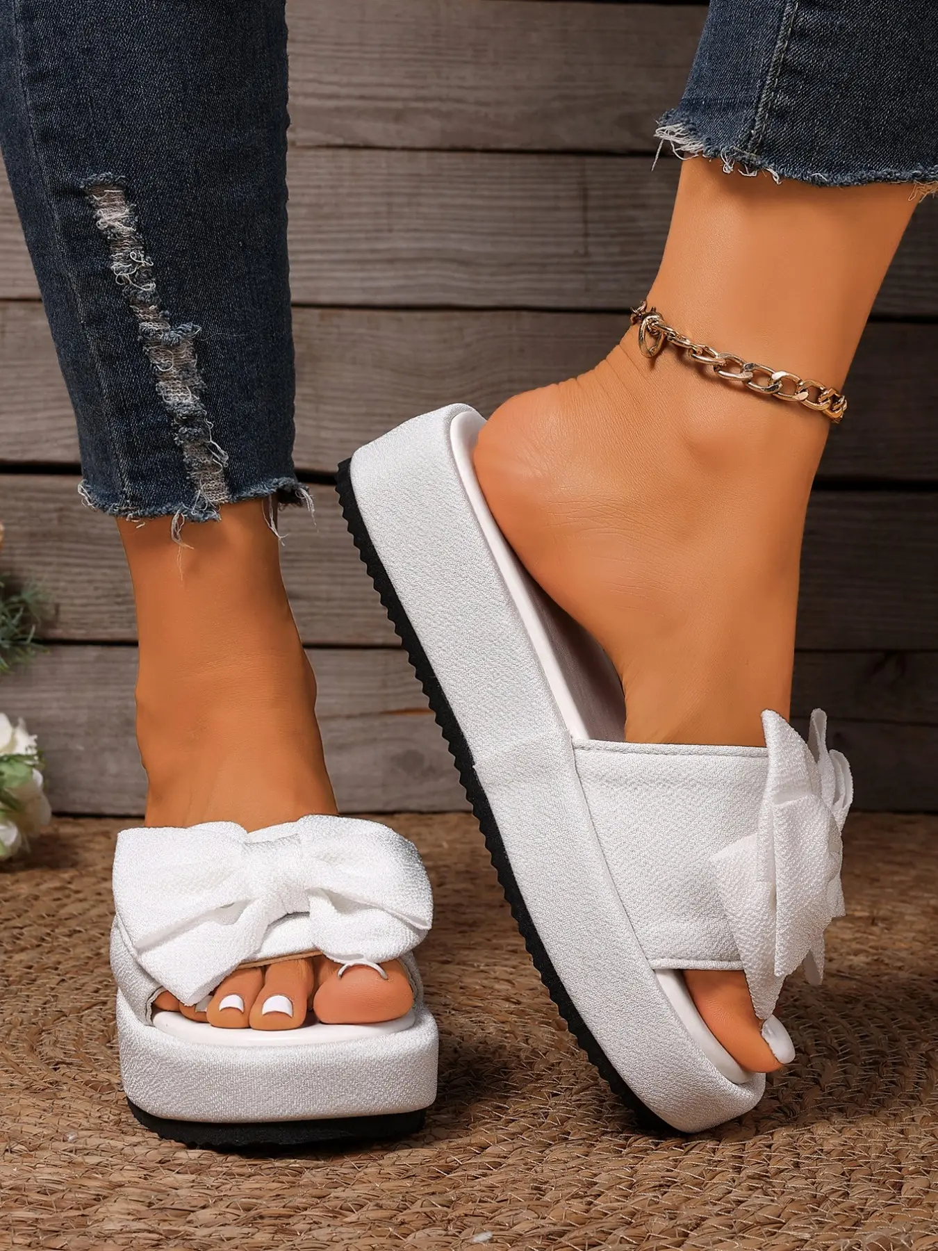 【Bow Tie Accent】: Features a charming bow tie detail, adding a playful touch to your summer footwear collection.