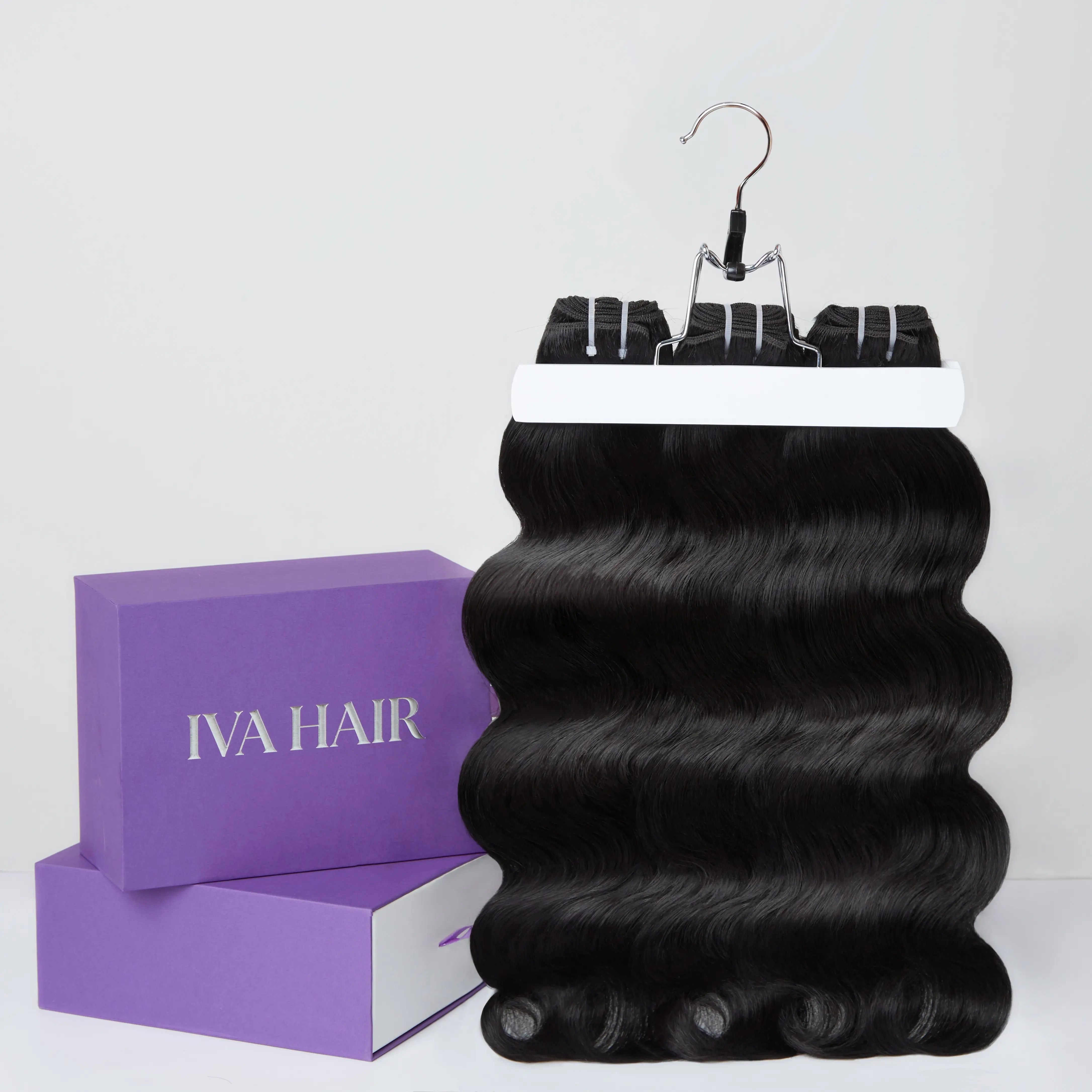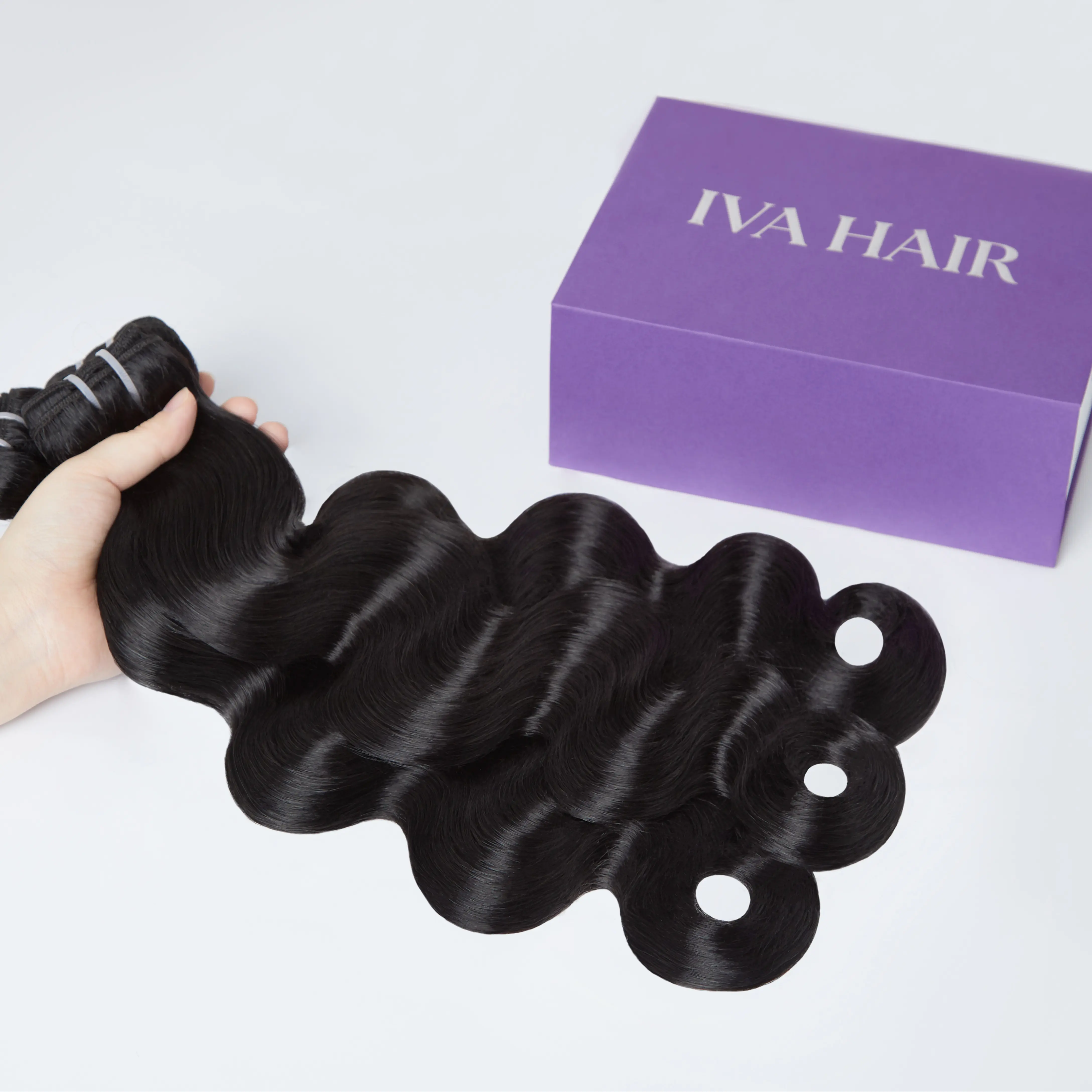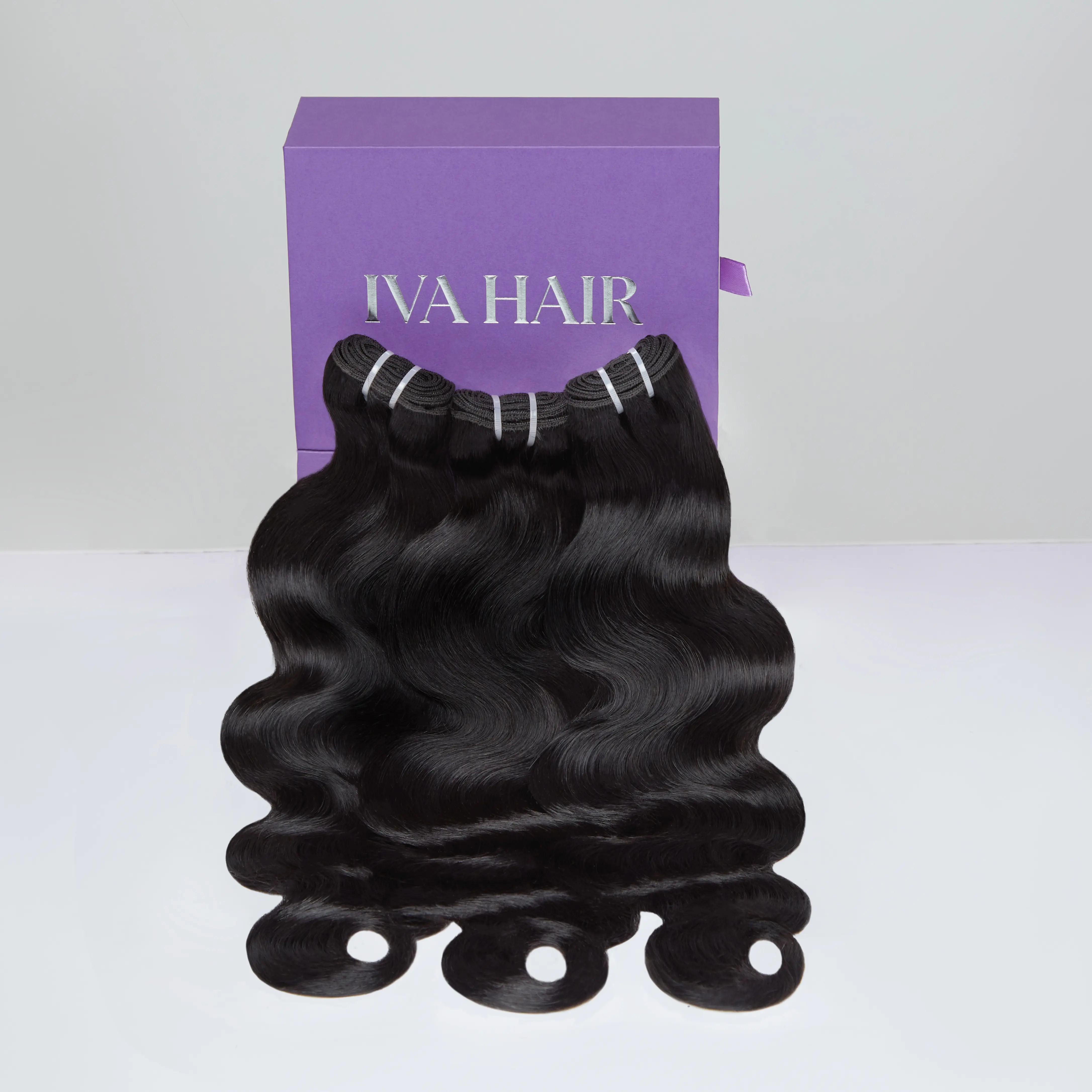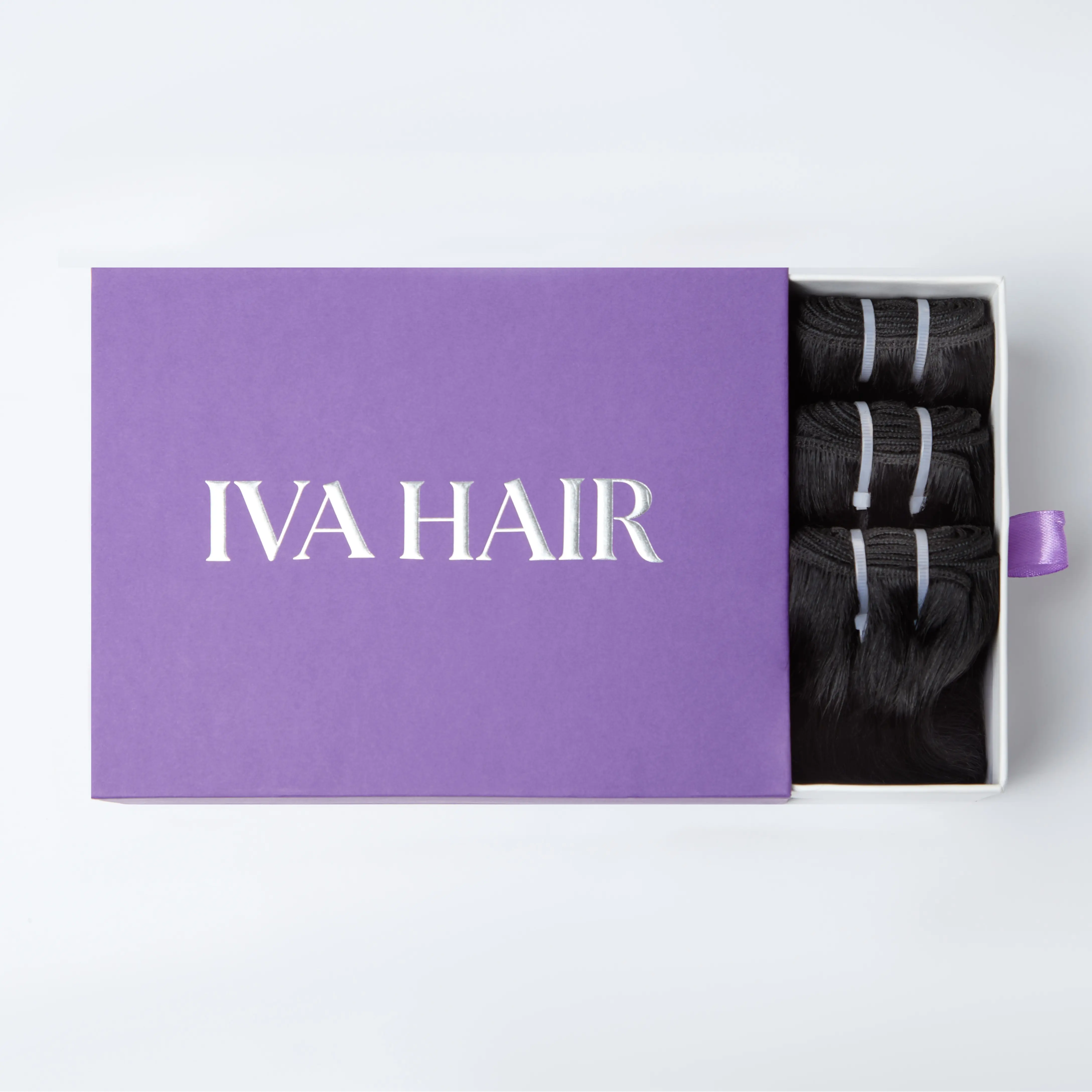 IVA Hair Bundles Box is designed for premium packaging of human hair bundles. It's specifically crafted for virgin hair boxes. This box ensures your hair extensions are stored and presented in the best condition.