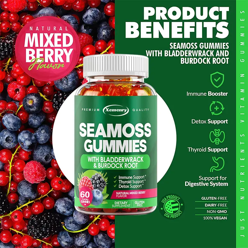 SEAMOSS GUMMIES--NATURAL MIXED BERRY FLAVOR-1750MG OF WILDCRAFTED IRISH SEAMOSS/1000MG OF BLADDERWEACK/250MG OF BUR DOCK ROOT---GMO,GLUTEN,DAIRY-FREE