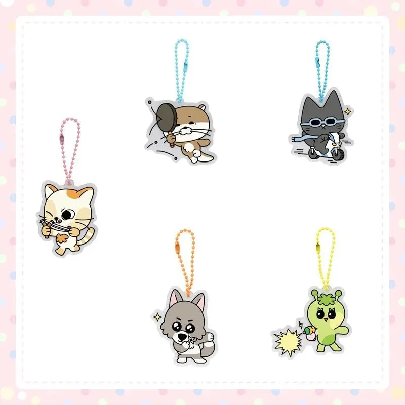 5. Popular Korean Boy Group Idol Cute Animal Pendant Cartoon Style Transparent Acrylic Bead Chain Next Door Keychain Fans Collect