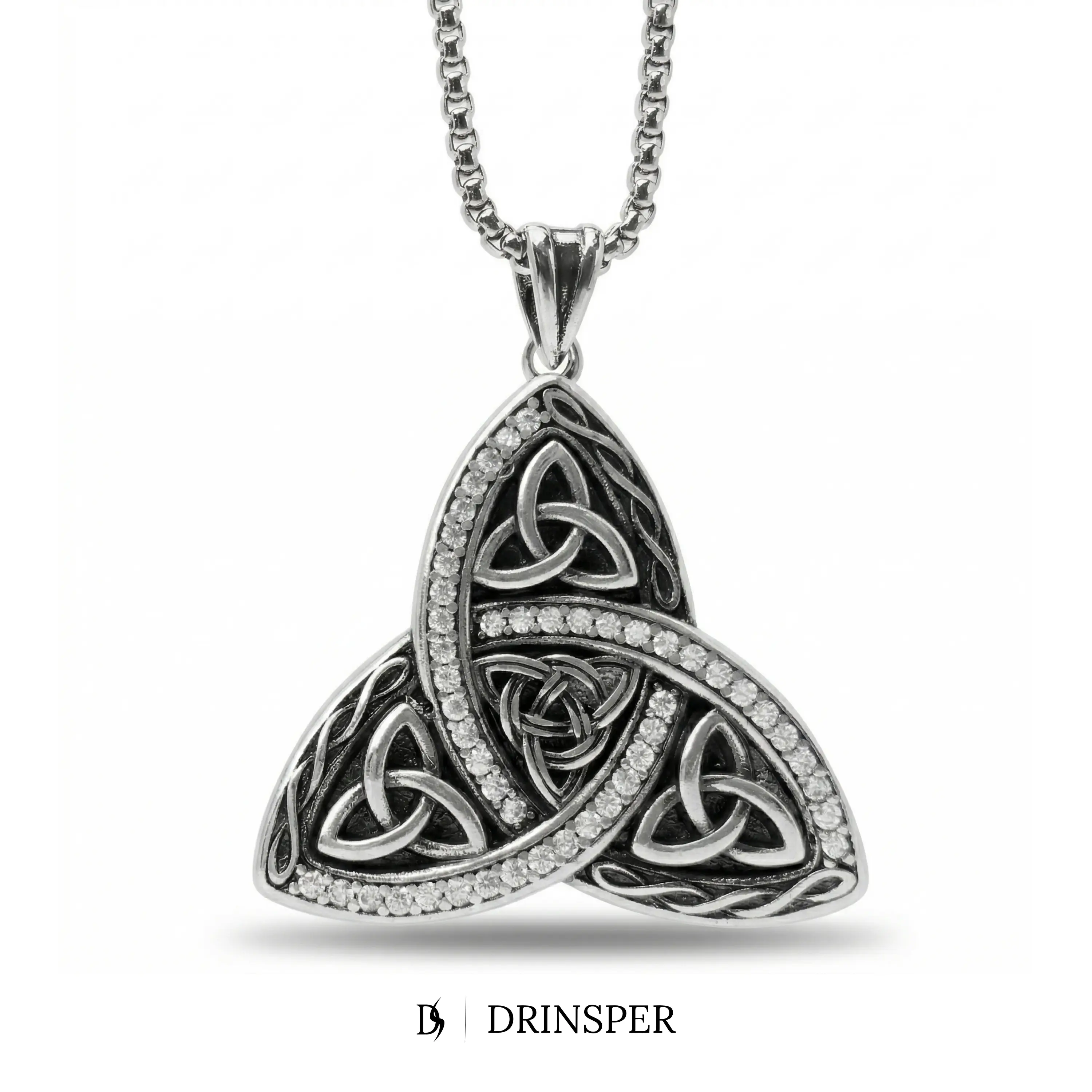 DRINSPER Vintage Celtic Knot Which Knot Pendant Necklace for Women, Silver Plated Copper Trinity Knot Jewelry with Cubic Zirconia, 18" + 2" Box Chain, Gothic Celtic Style Fashion Necklace Gift for Daily Wear, Festivals and Occasions