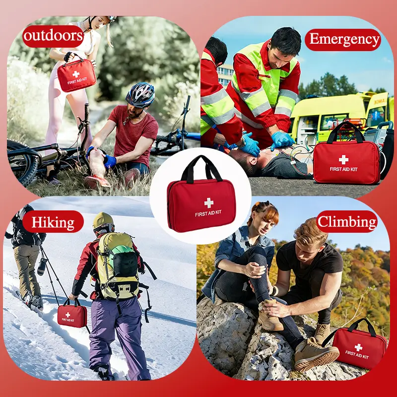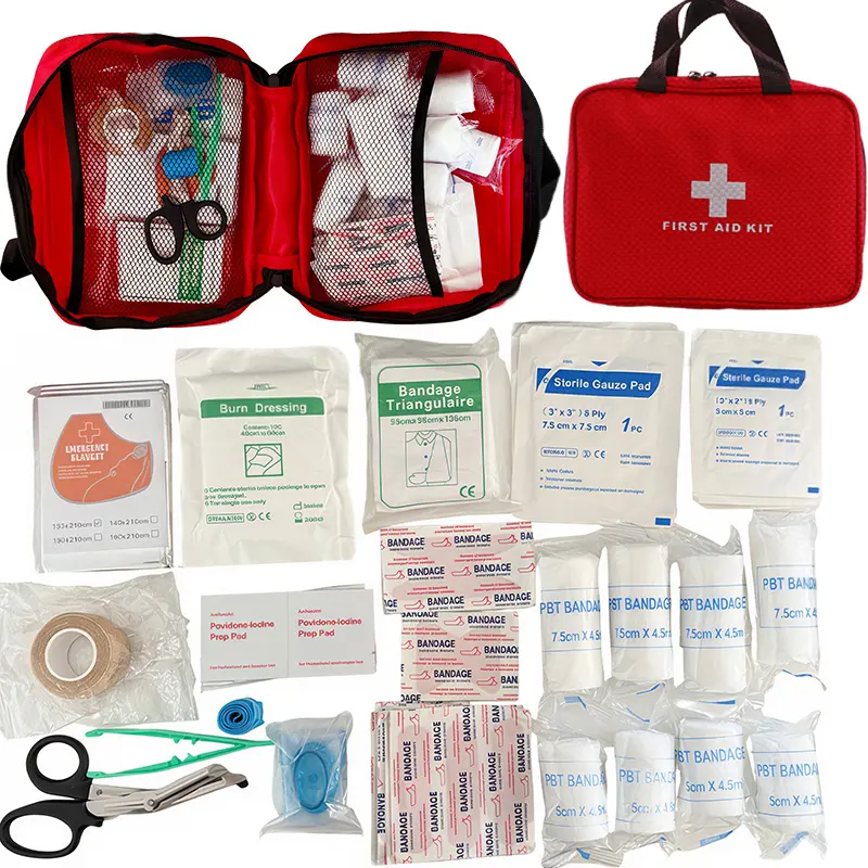 Includes bandages, gauze pads, adhesive tapes, scissors, tweezers, gloves and more for daily care and outdoor emergencies.