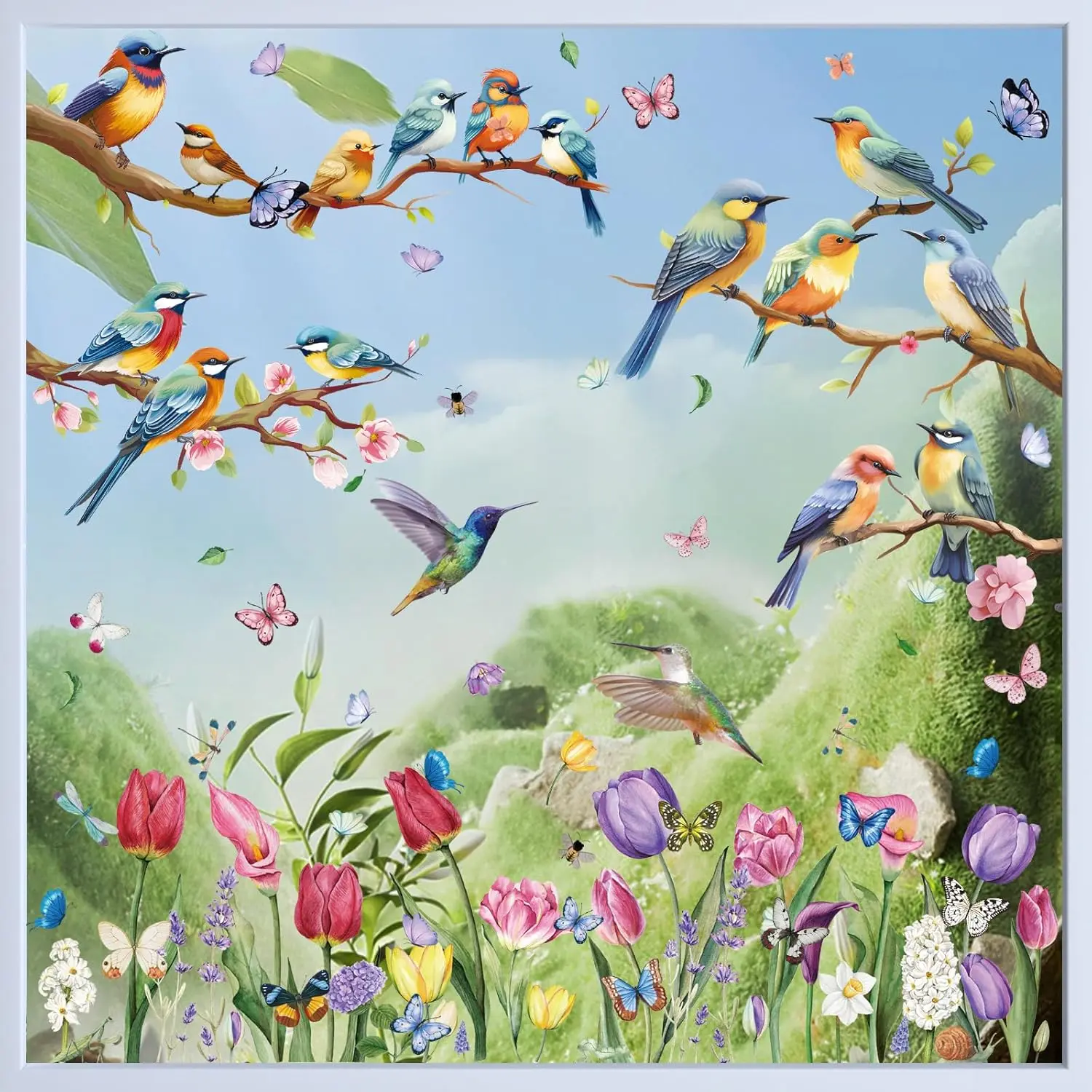 ·🌺【9 Large Sheets Set】🌺 Package includes 9 large sheets cartoon spring window clings stickers, includes many spring element patterns, such as branch, butterfly, flower, bird, dragonfly, etc. These spring summer window stickers will help you create a happy spring summer atmosphere for your family.