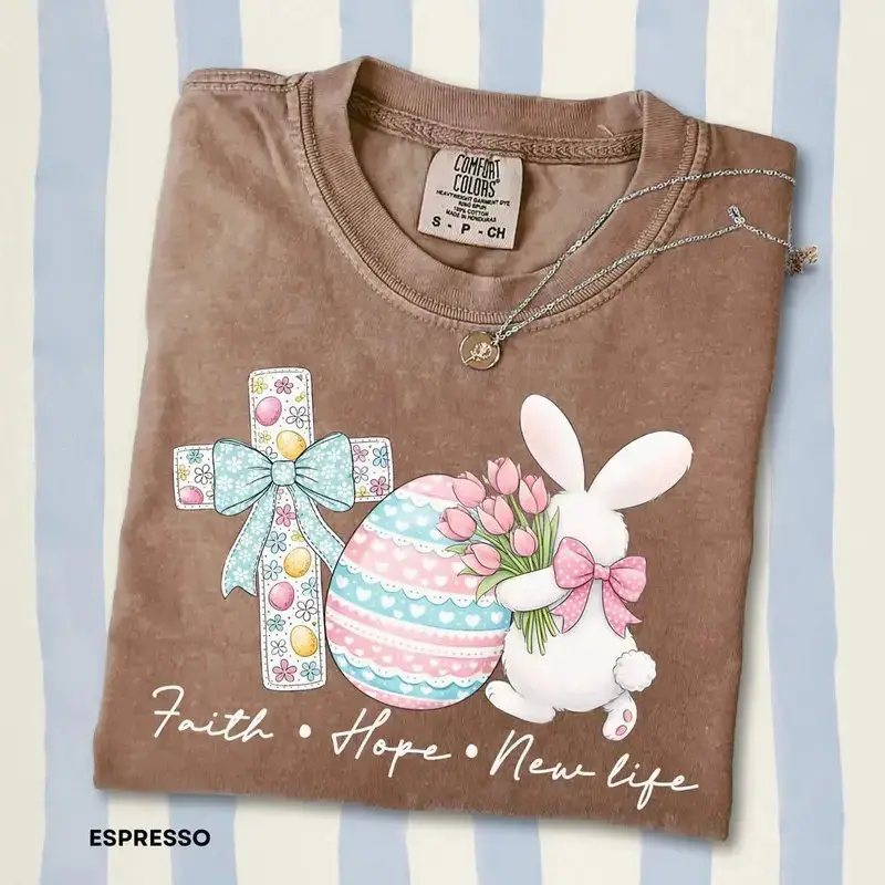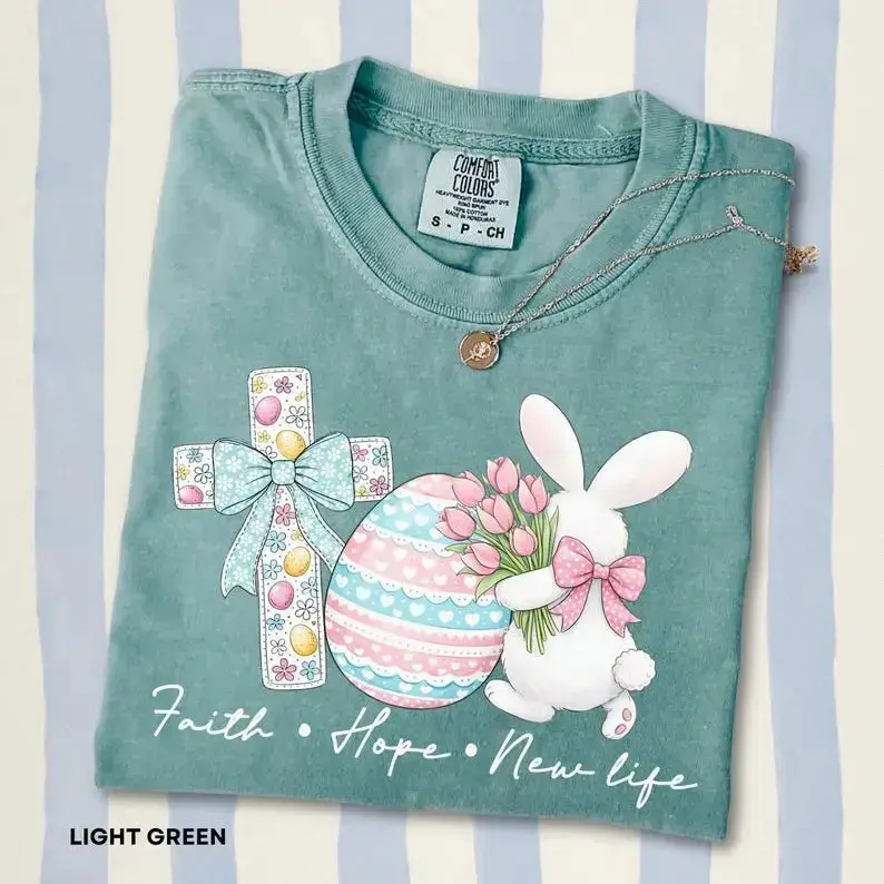 Comfort Colors Faith, Hope & New Life T-shirt, Easter Shirt Cotton Christian Youth Tee Gift For Her Shirt Love Easter Day