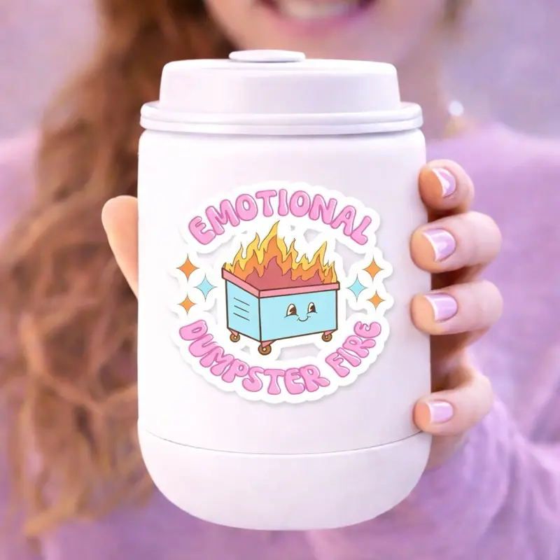 Emotional Dumpster Fire Waterproof Holographic Vinyl Sticker 2 Inch Durable Weatherproof Scratch Resistant for Water Bottles Tumblers Laptops Notebooks