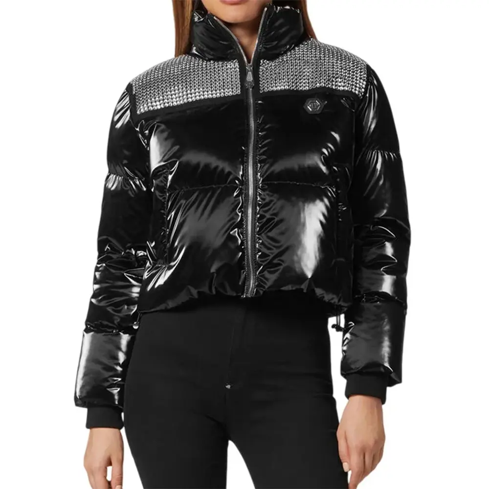 🌟 Women Crystal Embellished Glossy Nylon Puffer Jacket by Hide Crafts 🌟