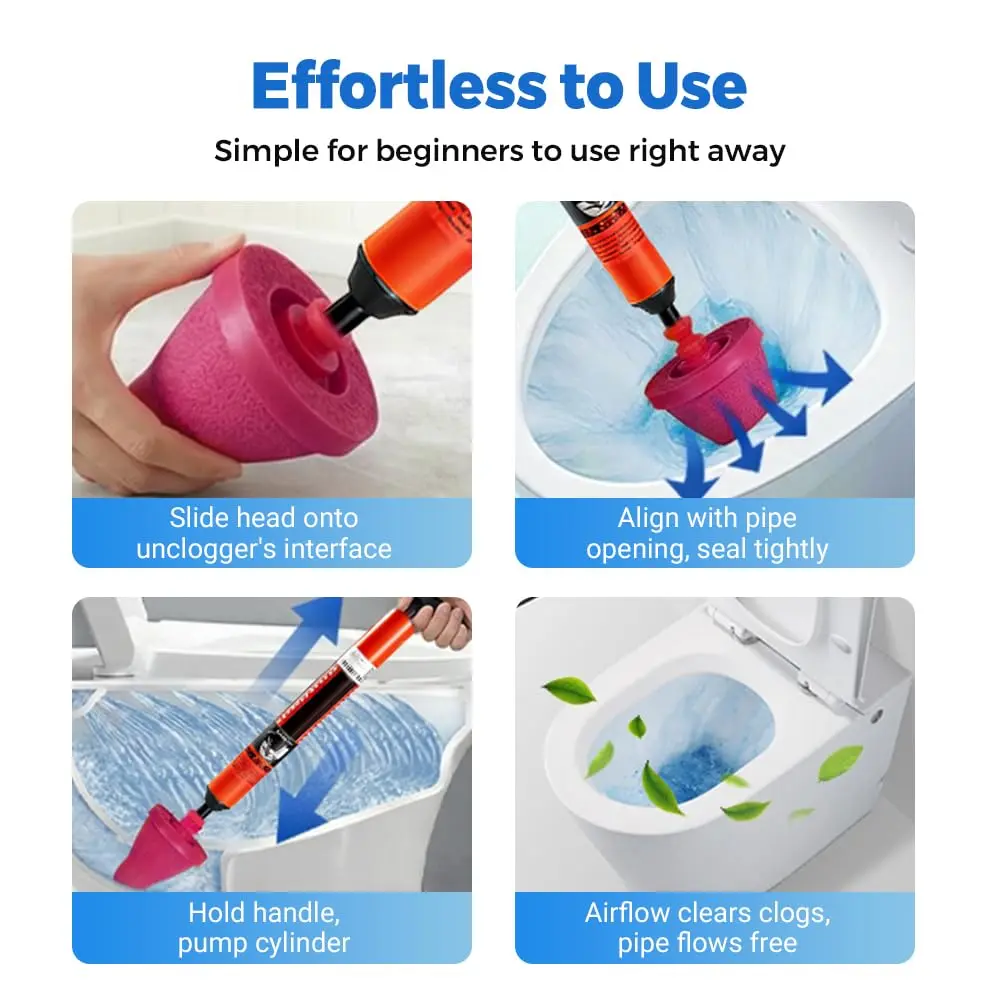 Easy-to-Use Manual Toilet Plunger — Air Pressure Drain Clog Remover for Home Cleaning