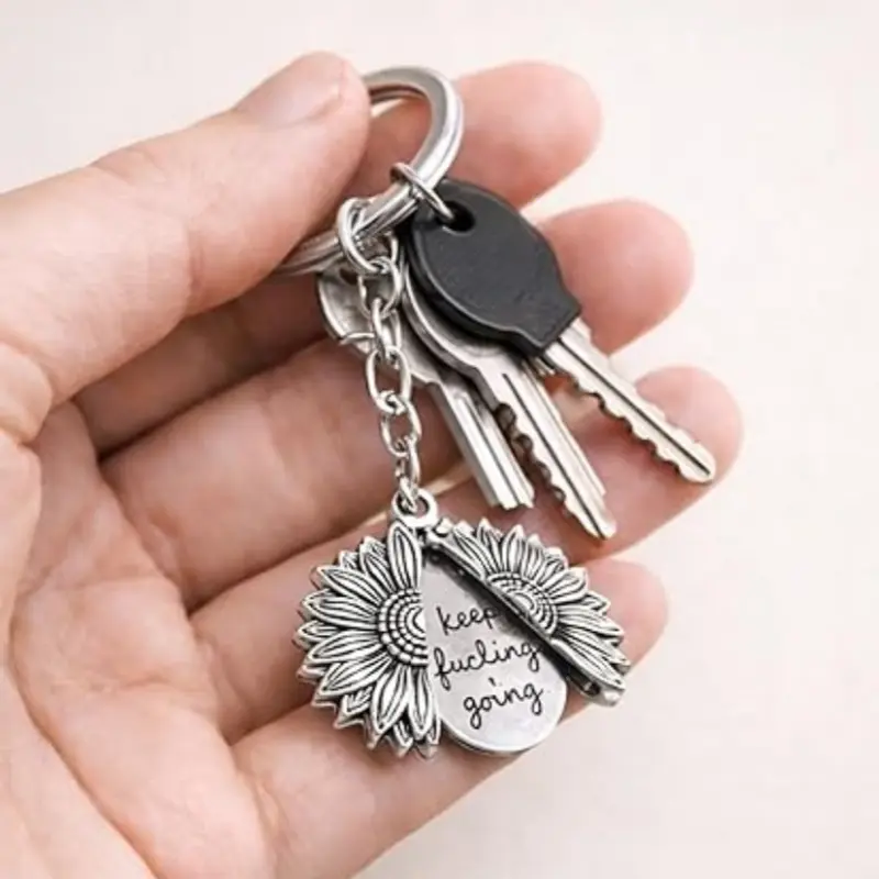 Sunflower Gifts For Women: The sunflower keychain is characterized by sunflowers, symbolizing warmth, positivity, and resilience, the petals can be opened or closed, and there is a pendant engraved with the words inside, best friend birthday gifts for women Men, inspirational gifts for women Men