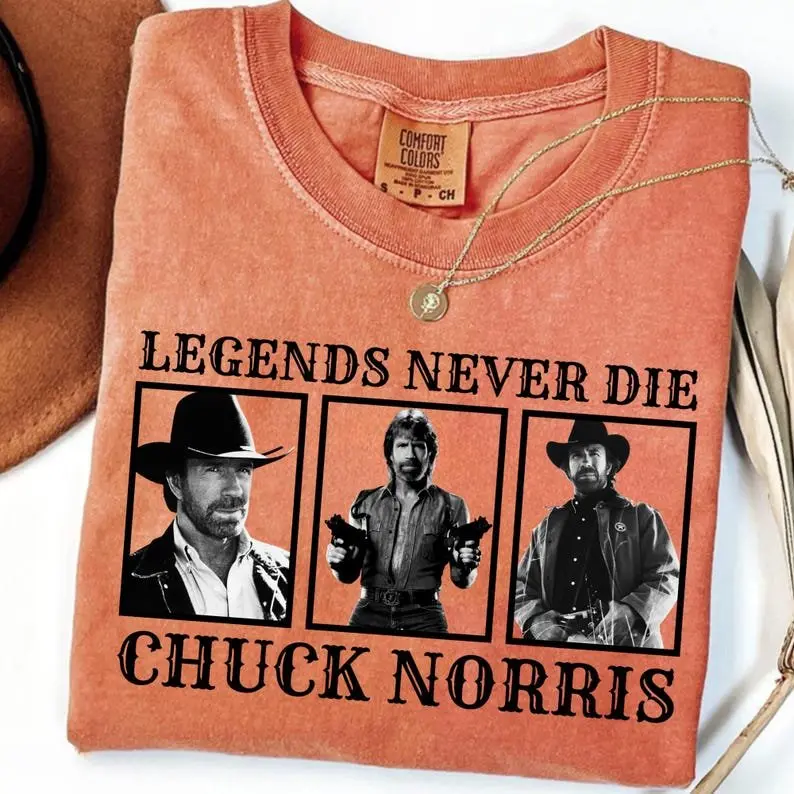 Chuck Norris Legends Never Die Comfort Colors Shirt, Faux Embroidery Action Movie Legend, Martial Arts Vintage Graphic