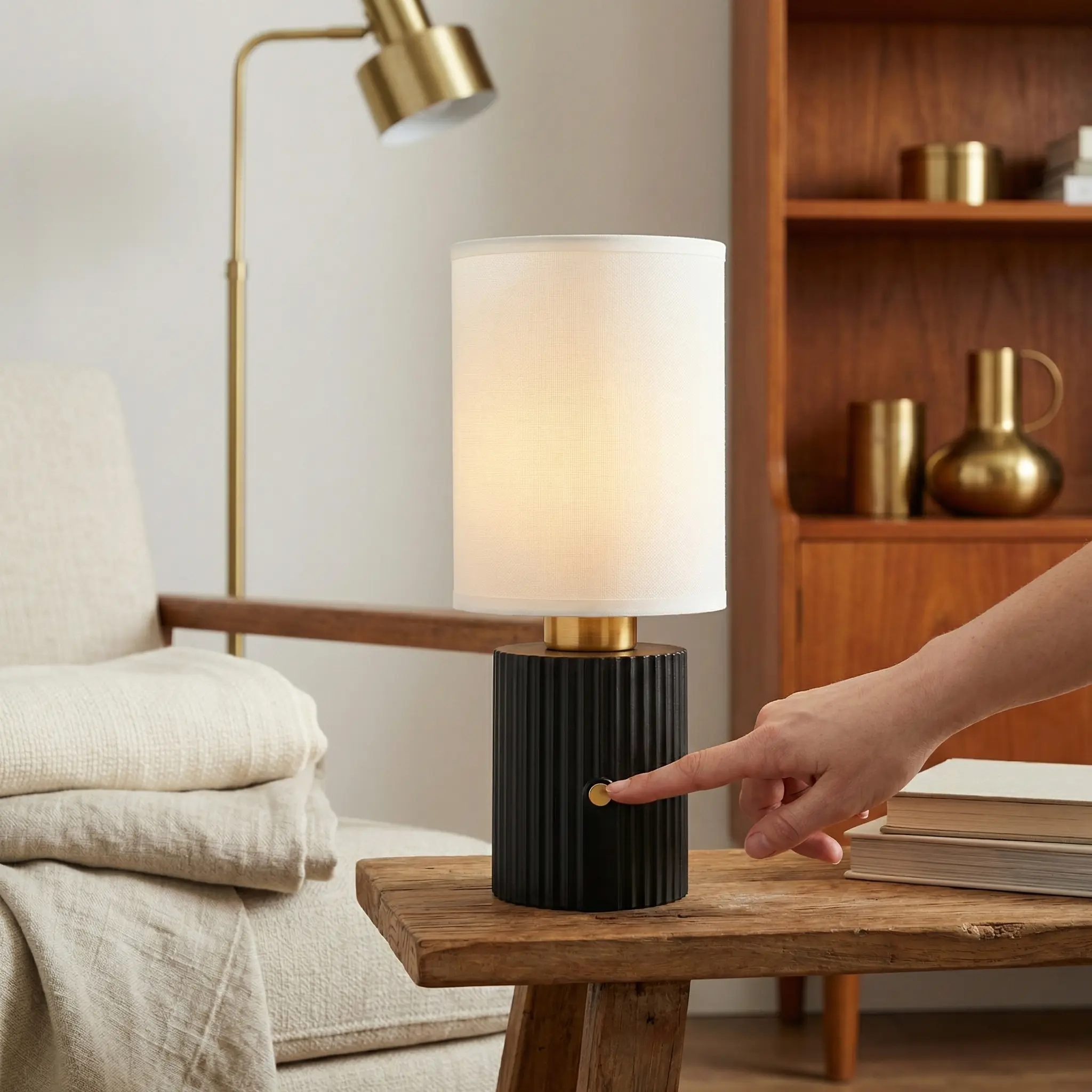 Bring a warm and modern touch to your space with this elegant bedside table lamp. Designed with a sleek black textured base and a clean white shade, it creates a soft ambient glow that feels cozy, relaxing, and refined. It is a beautiful fit for bedrooms, nightstands, living rooms, reading corners, and other small spaces that need both light and style.