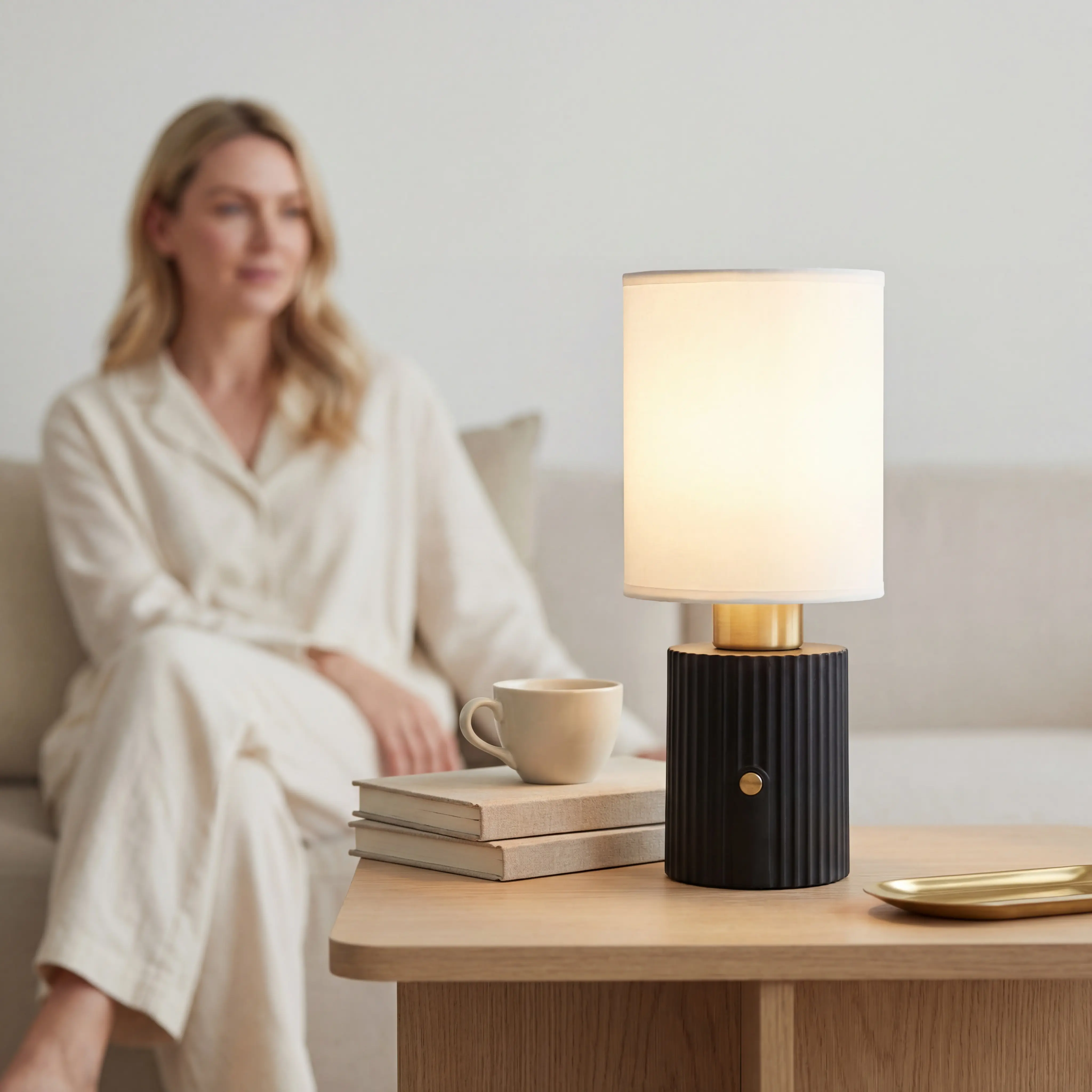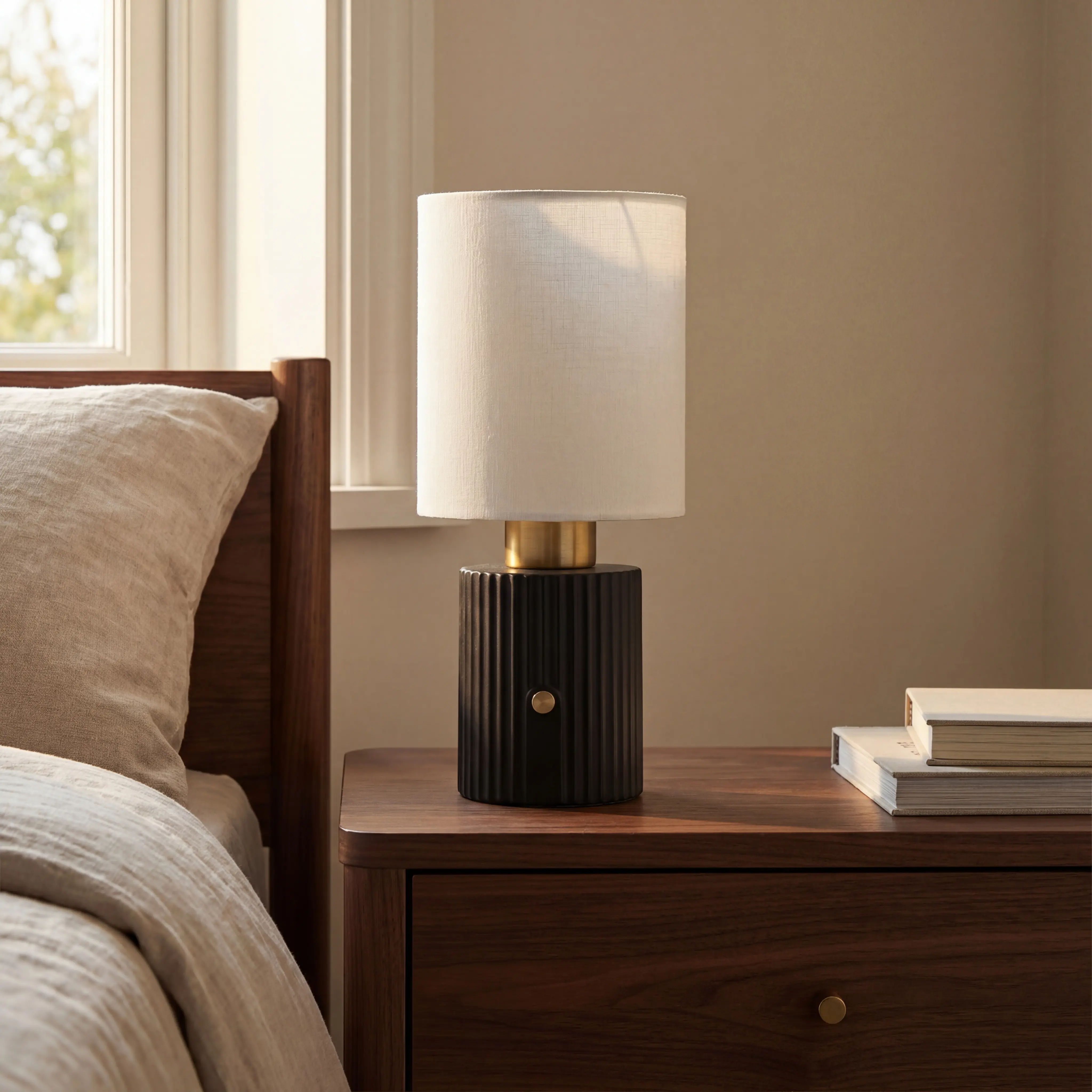More than just a lamp, this piece also works as a decorative accent that helps elevate the overall look of the room. The contrast between the dark base and bright shade gives it a clean, balanced appearance that blends naturally with modern, minimalist, and cozy home decor. Whether placed beside the bed, on a side table, or on a shelf, it adds a polished and inviting touch to your space.