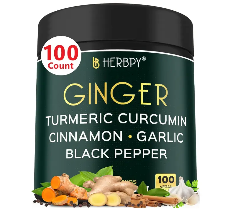 ·Vegan-Friendly: Herbpy Ginger herbal supplement offers 100 quick-release ginger root capsules in a dark jar. One ginger pill daily supports natural health and provides a 100-day supply of ginger extract, garlic, turmeric, cinnamon, and black pepper.*