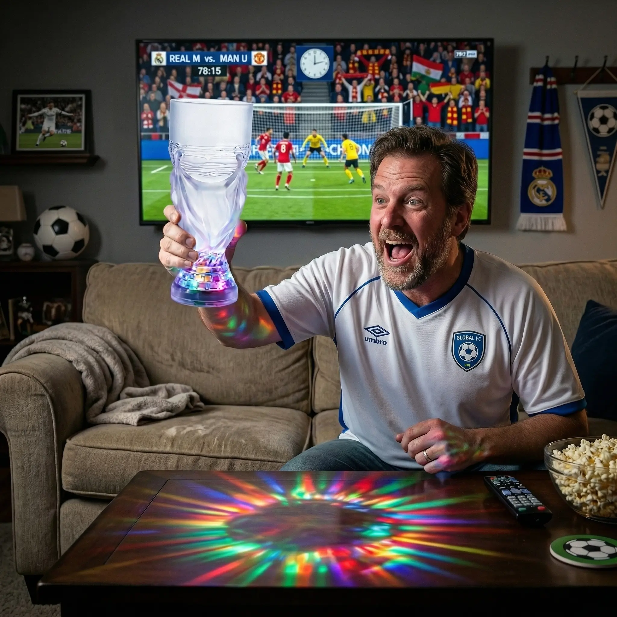 Ideal for soccer-themed events, this mug is a must-have. Its automatic glowing and flashing lights make it a conversation starter. Whether at a festival or a club, this mug will impress guests with its creative design. Enjoy your drinks in style with this magical LED trophy beer mug.