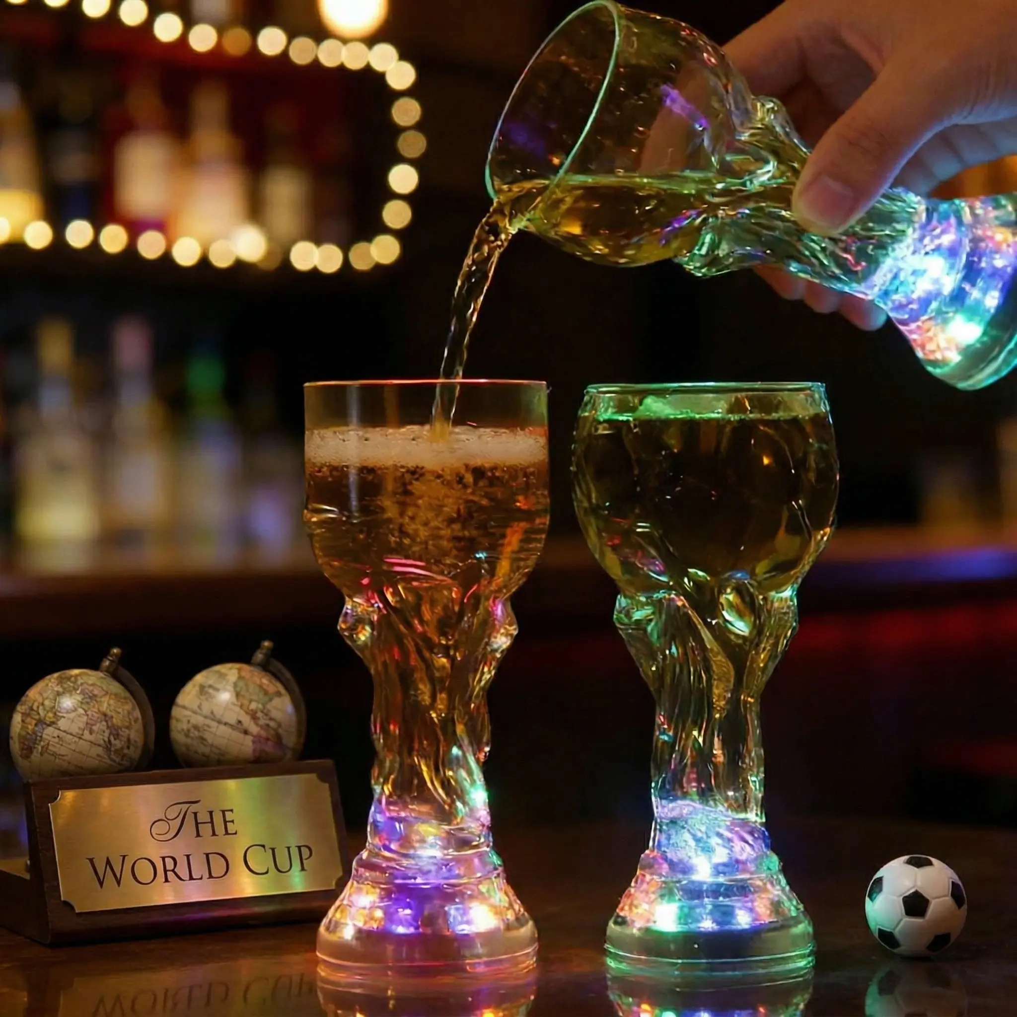 2026 World Cup Beer Mug LED Trophy Liquid Activated Light Up Cup Automatic Glowing Flash Color Changing Drinkware Perfect Novelty Gift for Soccer Fans, Football Parties, Bars, Clubs and Festivals Creative Night Light Prop