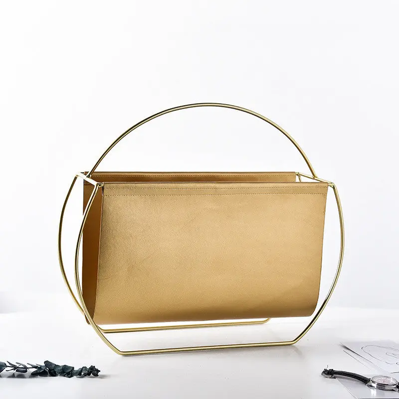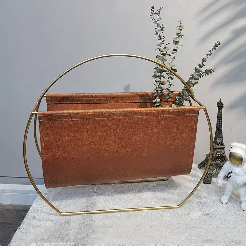 Elevate your space with the Light Luxury Nordic Modern Metal Leather Magazine Rack, designed for those who appreciate both style and function. This exquisite piece comes in a selection of captivating colors including Dark Brown, Gold, Pink, Grey, and Light Brown, allowing you to seamlessly integrate it into any decor.