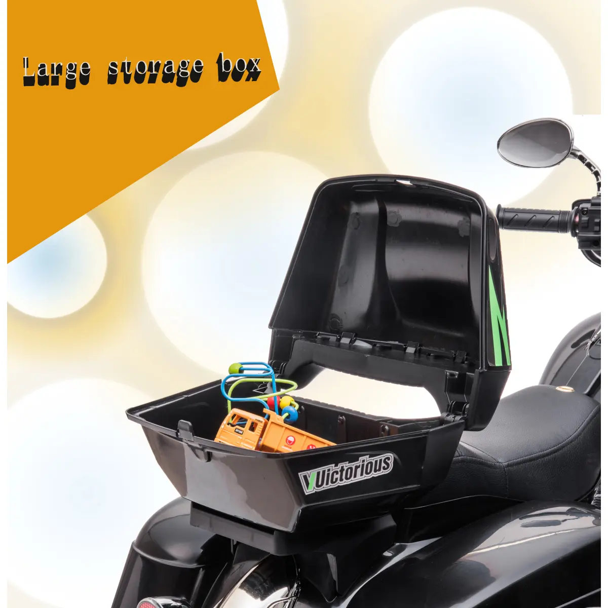 [Extra-large Storage Trunk and Easy to Install]Our kids motorcycle comes equipped with an extra-large storage trunk, perfect for holding children's toys, books, and other items, providing parents with added convenience.This ride-on toy needs to be assembled, and we will provide clear instructions so that you can easily complete the assembly.Designed for kids aged 3-6, you can rest assured that your child will ride safely without the risk of falling.