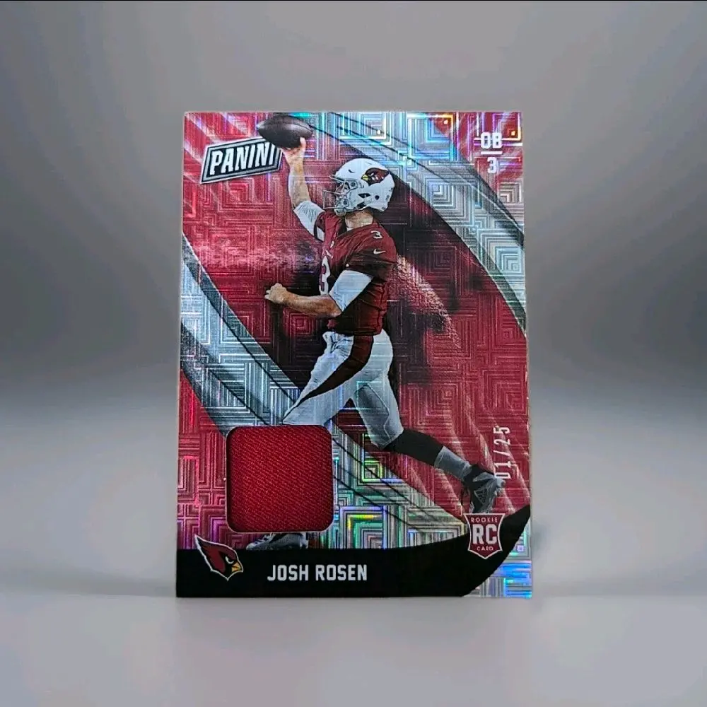 This card is a rare find for collectors. It's the first print in a limited edition of 25, making it a prized possession. Perfect for fans of Josh Rosen and football trading cards. The card captures the essence of the player, offering a unique piece of memorabilia.