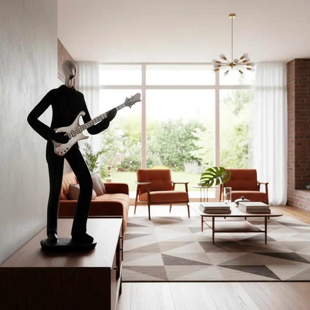 Sculptural Elegance: Modern Living Room Bookshelf Accents