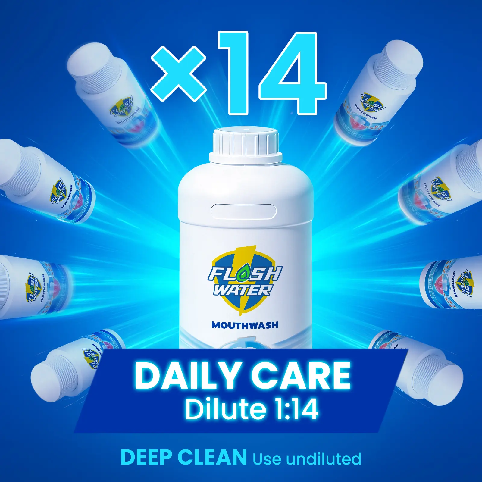 Flashwater Hypochlorous Acid Mouthwash for Fresh Breath & Oral Care, Anti-Biofilm Formula, Alcohol & Fluoride Free, Gentle & Non-Irritating, Dilutable 1:14, Safe for Adults & Kids 6+