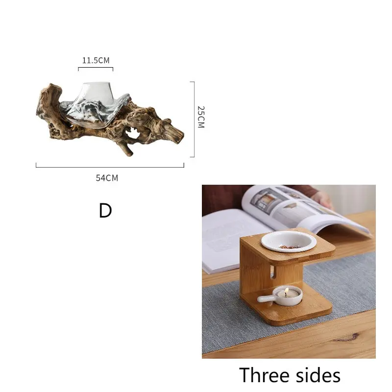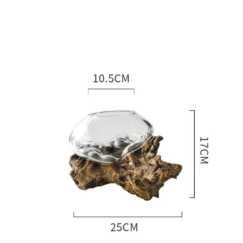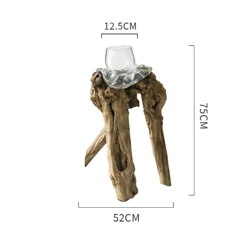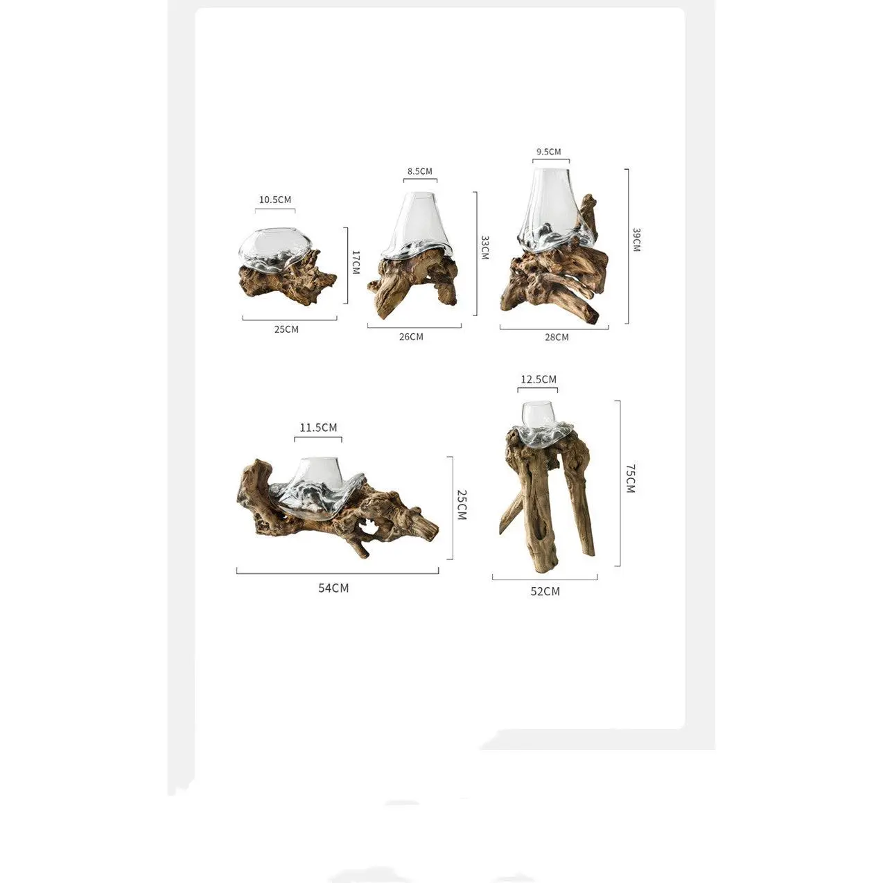 Crafted from high-quality glass, each section boasts a stunning transparent finish complemented by a refined wooden base. Available in five elegant variations, these vases are perfect for adorning your TV cabinet or any exquisite display area.