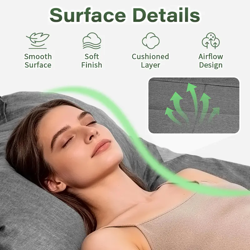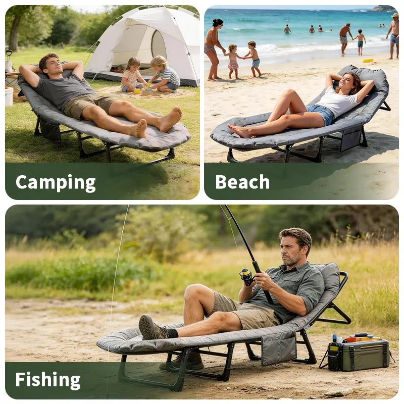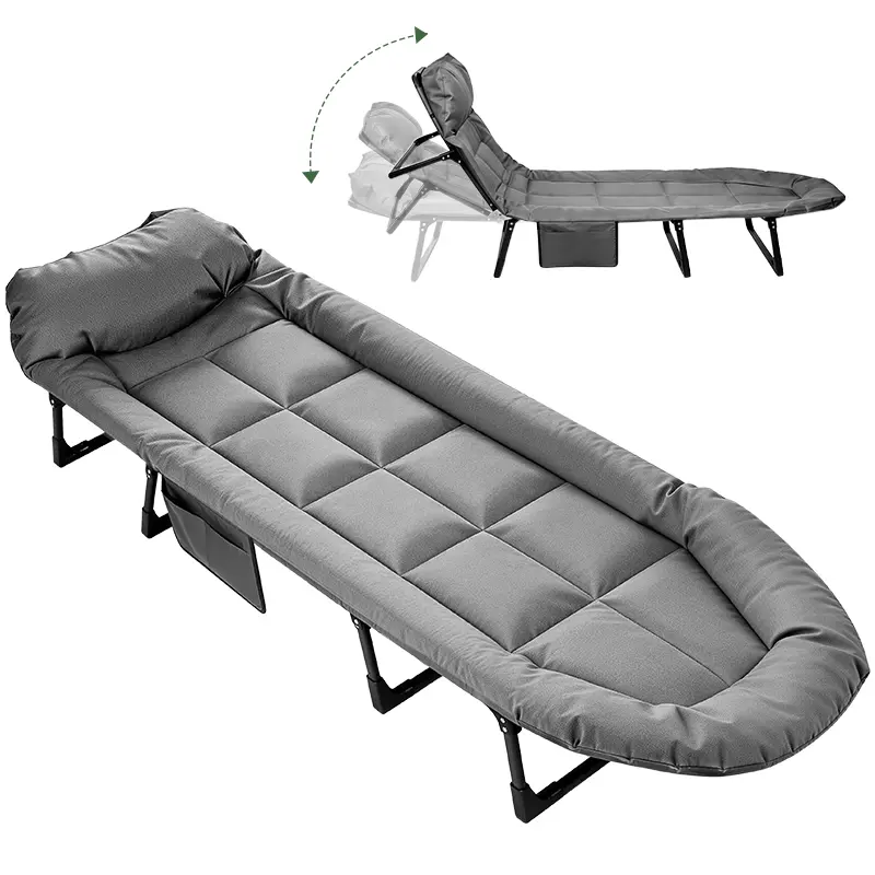 ·【Built-In Comfort Headrest】 Enjoy added relaxation with the integrated headrest on this foldable bed. It provides essential support for your head and neck, enhancing comfort whether you're indoors or outdoors.