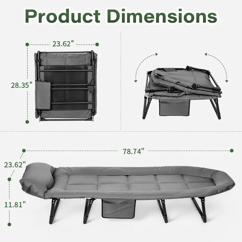 ·【Breathable & Sturdy Fabric】 Made from durable double-layer Oxford fabric, the portable bed is both strong and breathable. This design promotes air circulation to keep you cool and comfortable in various conditions.