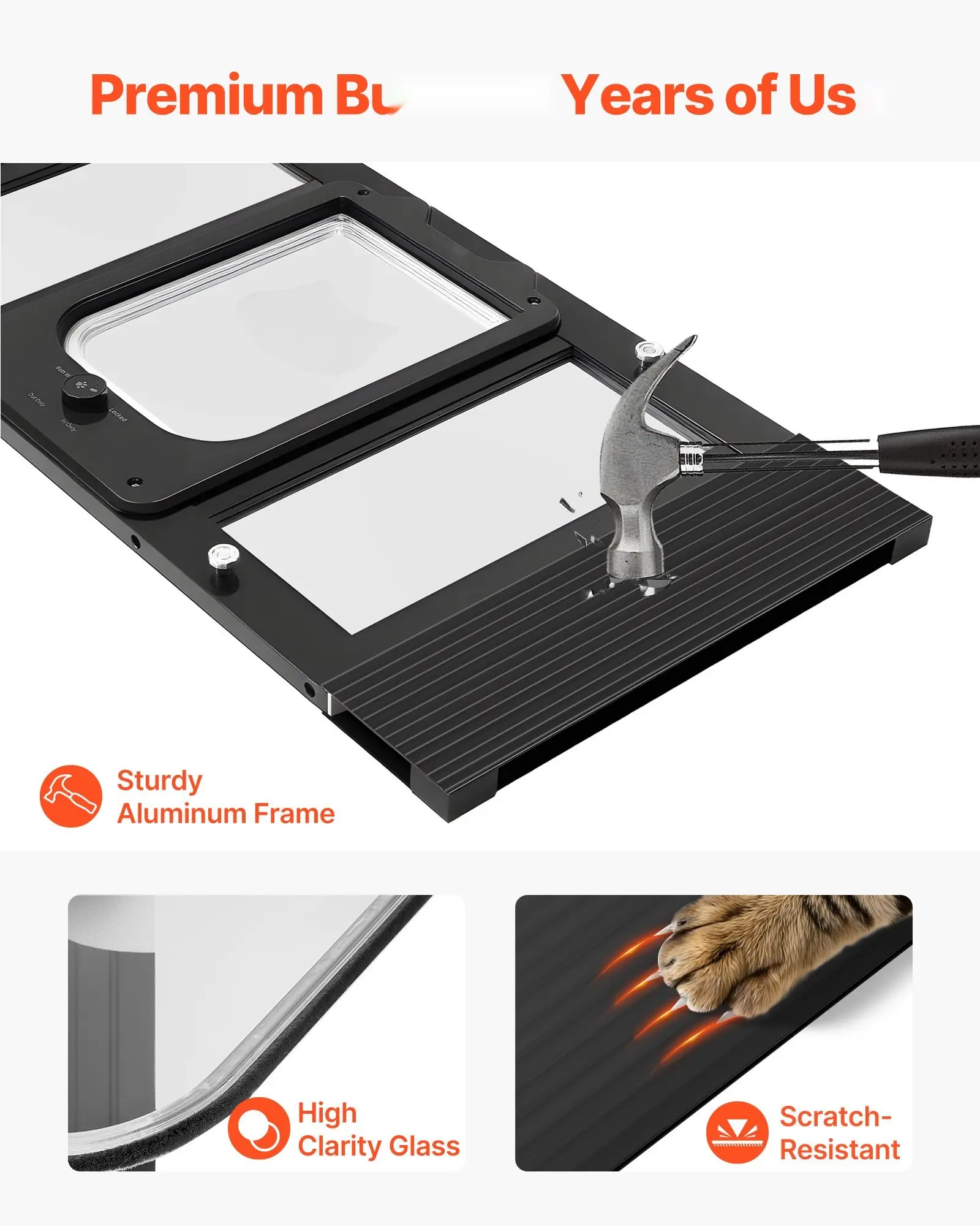 ·Premium Aluminum Alloy Frame: Crafted with a sturdy aluminum alloy frame and a clear, scratch-resistant flap, this window pet door for cat holds up to daily use and your cat's curious adventures