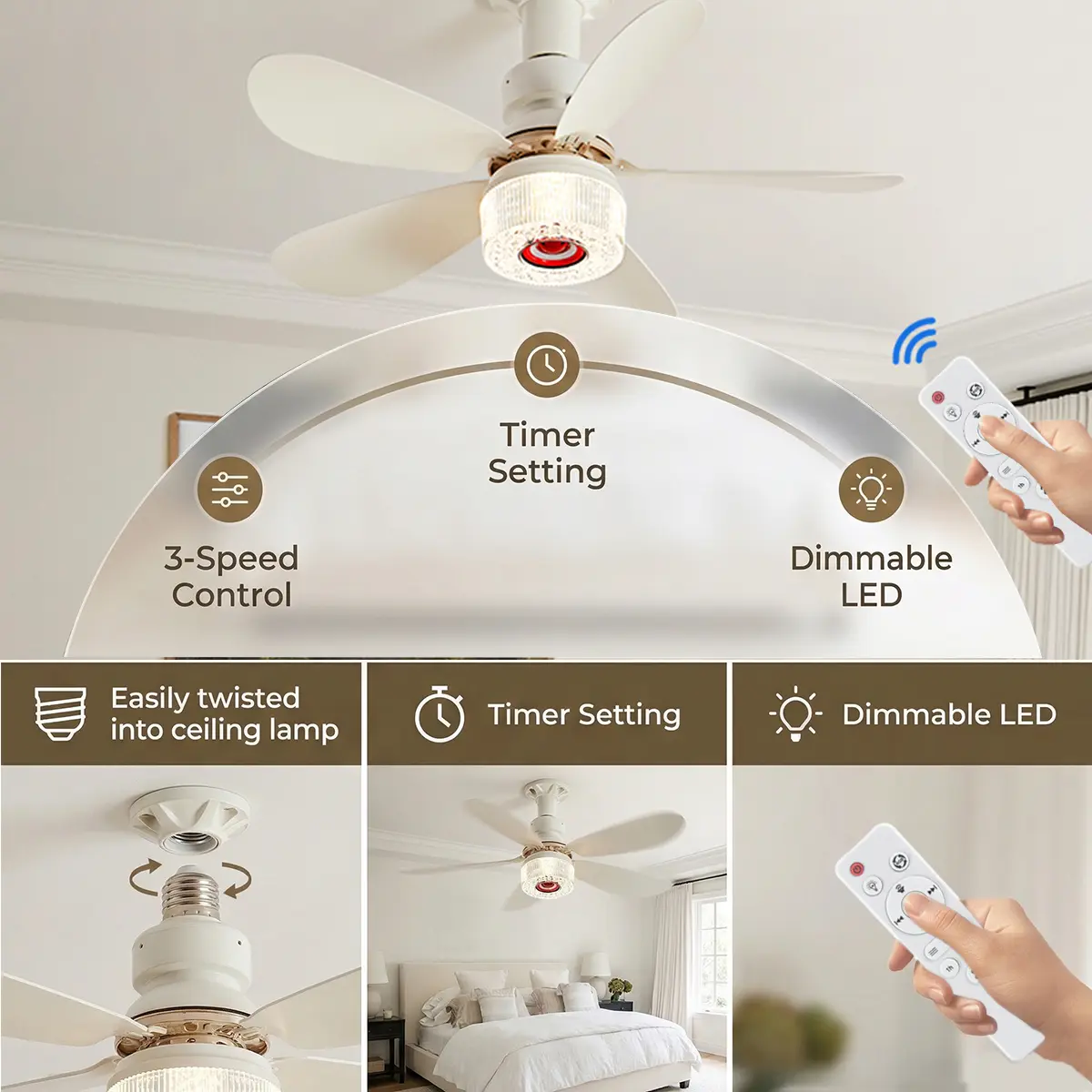 With strong wind power, silent operation, and durability, it is equipped with a pure copper DC brushless motor. The fan blades have three speed settings (295-325R/min), and the 10W fan blade power brings stable wind force. The lamp body and fan blades are made of ABS material, and the face cover is made of PS material, making it sturdy, durable, and running more smoothly.