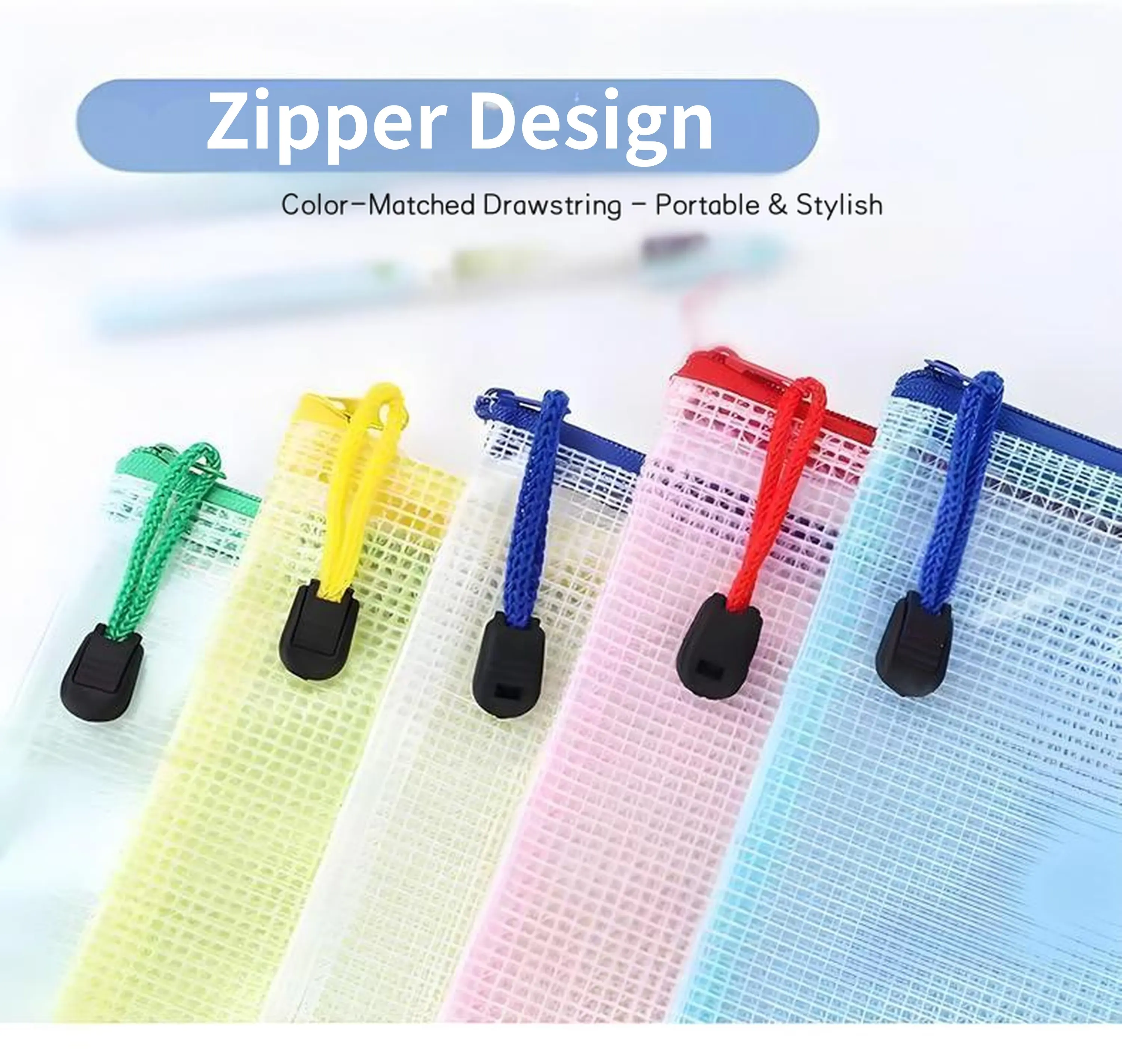 Tired of messy documents and scattered stationery? Our 5-Pack A4 Mesh Zipper Pouches are your ultimate organization solution! Made from premium thickened PVC material, these durable storage bags are designed to keep your files, supplies, and essentials safe, tidy, and easy to access — perfect for office, school, travel, and home use.