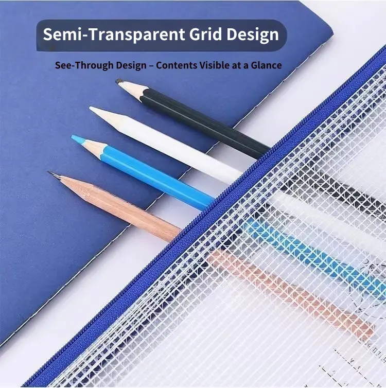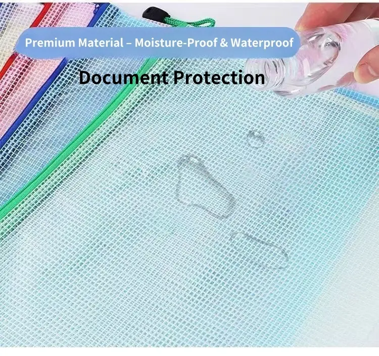 Crafted from high-quality, tear-resistant thickened PVC mesh, these pouches are 100% waterproof and moisture-proof, effectively protecting your important documents, receipts, and stationery from spills, dust, and moisture. The reinforced grid structure ensures long-lasting reusability, making it a cost-effective choice for daily use.