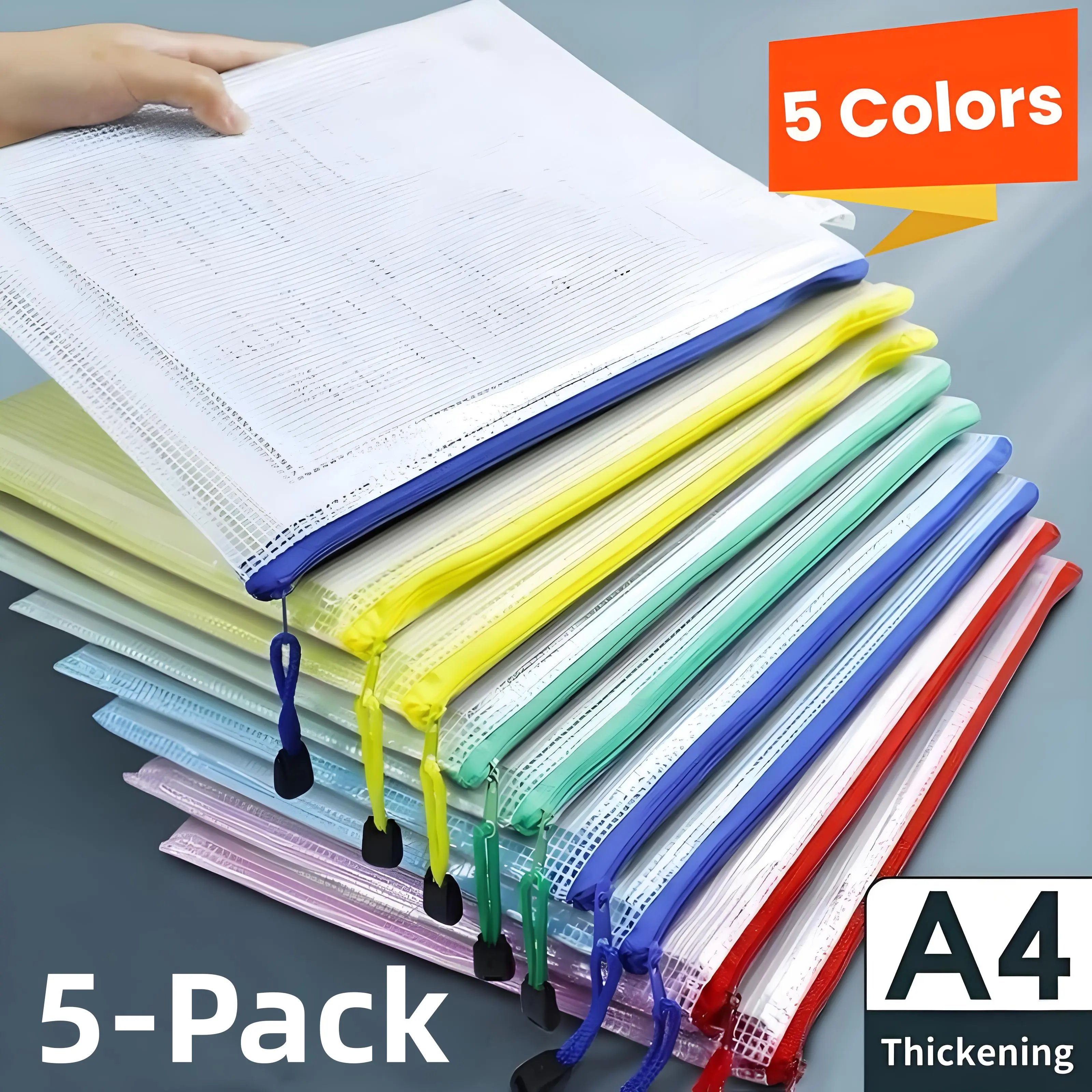 5 x A4 Mesh Zipper Pouches (5 Assorted Colors)