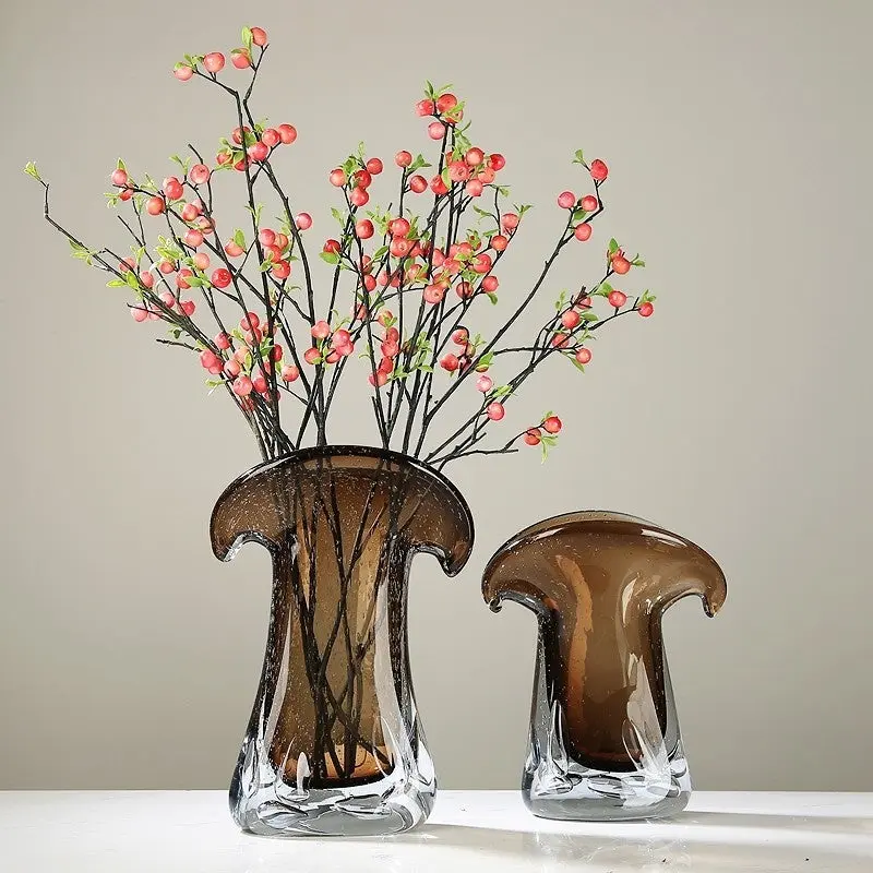 Brown Glass Hydroponic Art Vase - Elegant Modern Decor