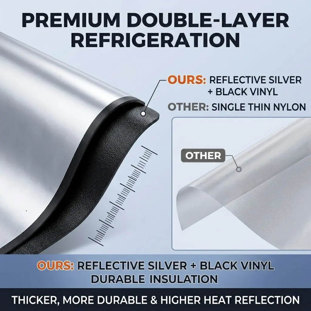 🚙 Universal FitLarge size (140x79cm/55.12x31.1in) fits most sedans, SUVs, and pickups. Perfect for year-round use to keep your car cool and protected.