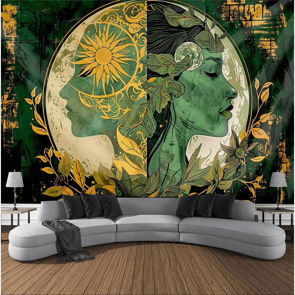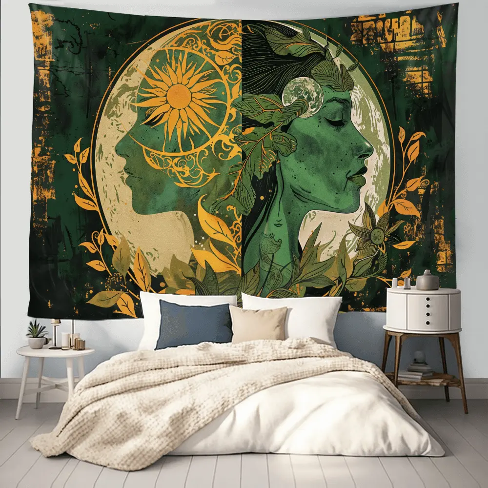 Sun and Moon Goddess Mandala Tapestry - Bohemian Style Decor, Mysterious Tattoo-Inspired Home Decoration, Polyester Material D