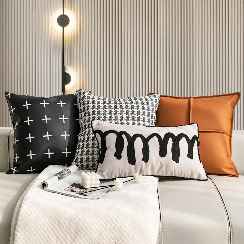 Elevate your living space with the Modern Minimalist Model Living Room Lumbar Pillow. Crafted from premium polyester, this pillow exudes a fashion-forward simplicity that complements any décor.