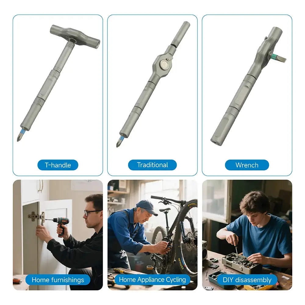 This versatile all-in-one tool set includes 24 interchangeable bits, perfect for daily household repairs, DIY projects, furniture assembly, electronics fixing, and bike maintenance. The magnetic design holds small screws securely, preventing drops and lost parts.