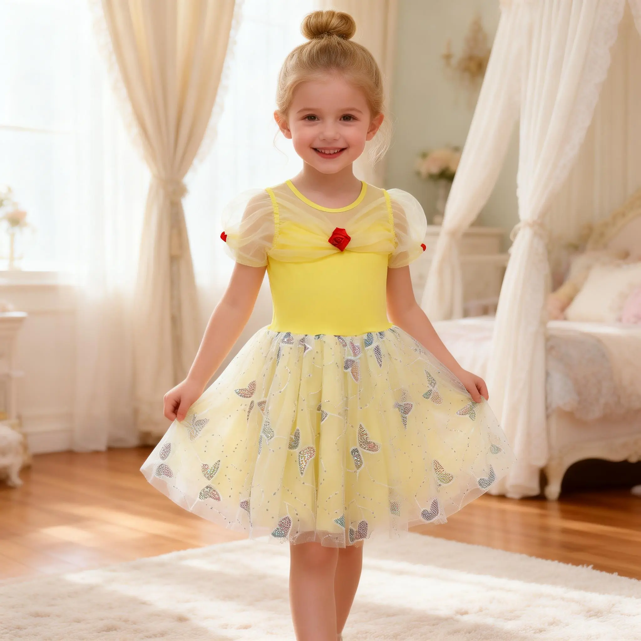 Yellow Girls Princess Dress, Toddler Butterfly Tulle Fairy Outfit for Birthday, Party & Photos