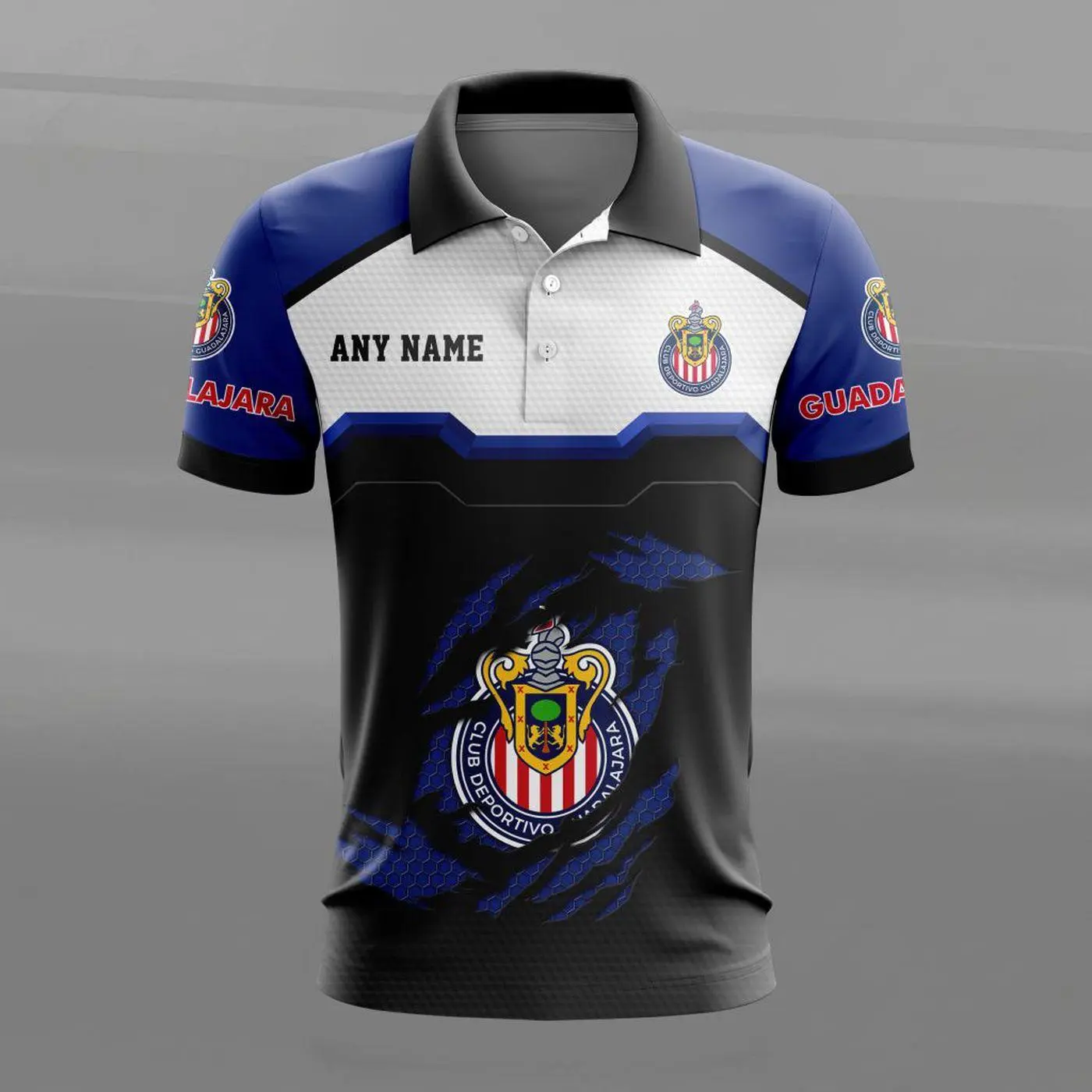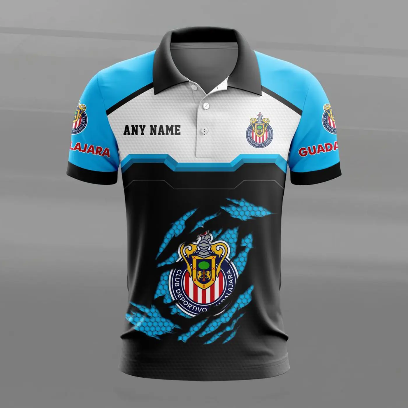 LIGA MX Chivas Guadalajara Personalized Name MultiColor Polo Design ST2603