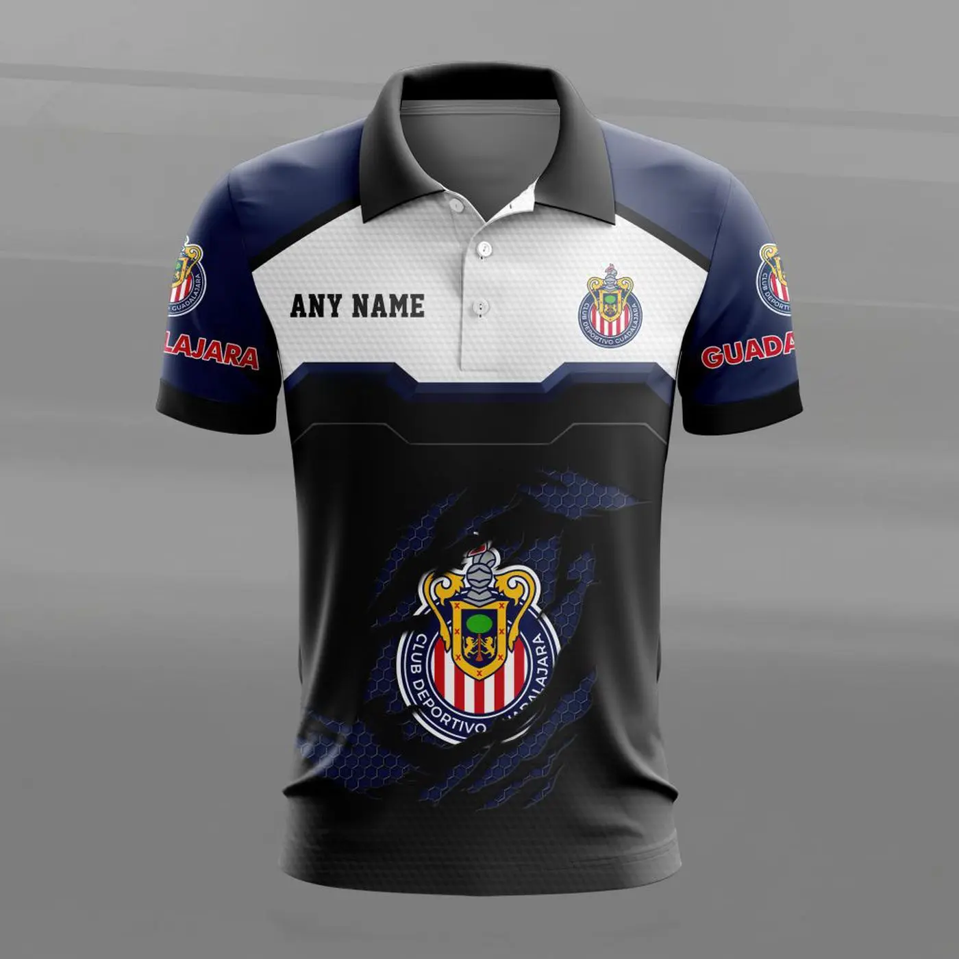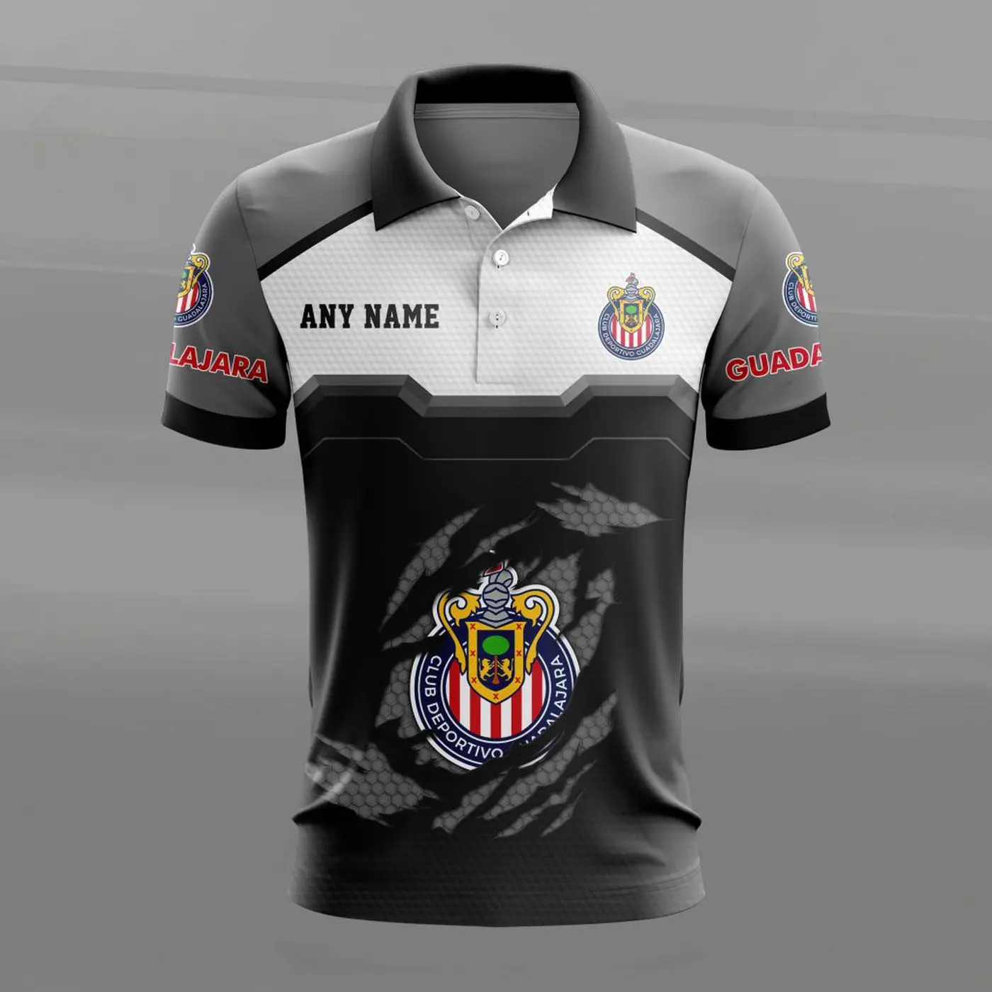 Stand out in style with the LIGA MX Chivas Guadalajara Personalized Name MultiColor Polo Design ST2603. Made with high-quality materials and featuring a customizable name option, this polo offers comfort, durability, and a unique touch to show your support for your favorite team. Elevate your fan gear with this must-have piece!