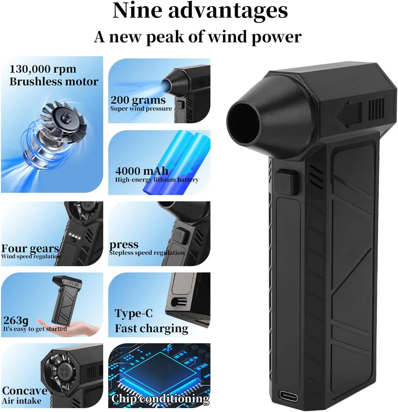 Compressed Air Duster, 130,000 RPM Keyboard Cleaner, Replace Compressed air can, Computer Accessories for Outdoors, PC, Electronics, Snow and Car Dust Off