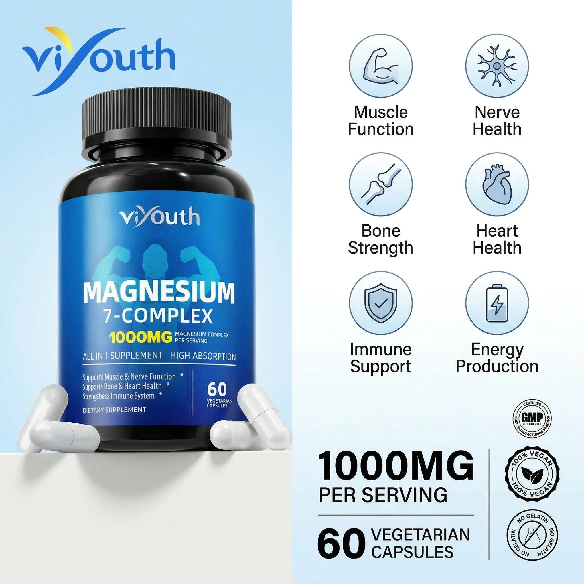 🌟 Viyouth 1000mg High Absorption 10-in-1 Magnesium Mix