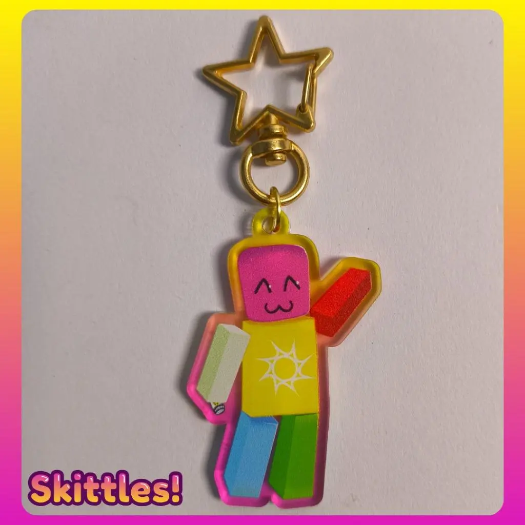 5. Roblox Happy World With Happy People Keychain! HWWHP Thomas and Skittles Acrylic Charms - Cute Acrylic Cartoon Keychain, Funny Meme Character Charm for Keys, Bags, Backpack, Durable Gift for Fans & Collectors