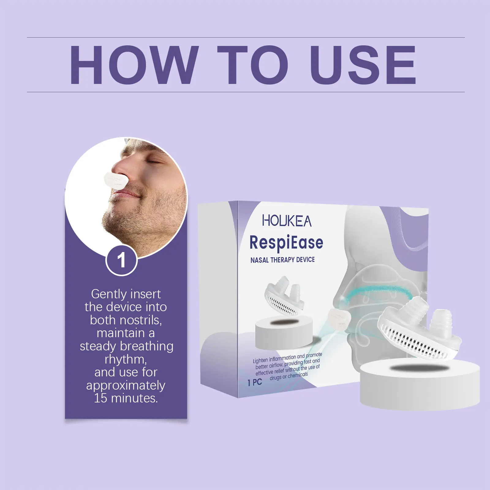 Our nasal care device contains ABS plastic. It can effectively reduce respiratory inflammation and help you breathe more easily. Its usage is very simple: gently insert the device into both nostrils, maintain a steady breathing rhythm, and use it for about 15 minutes. After use, remove the device and clean it for future use. It can also reduce the frequency of asthma attacks and improve quality of life