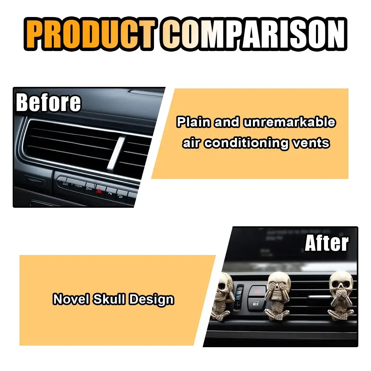 Skull Decor Car Air Freshener Vent Clip Goth Truck Interior Accessories for Men Women Teens Resin Material Durable Aromatherapy Halloween Dashboard Decorations Funny Christmas Gifts for Dad Mom Car Interior Decoration