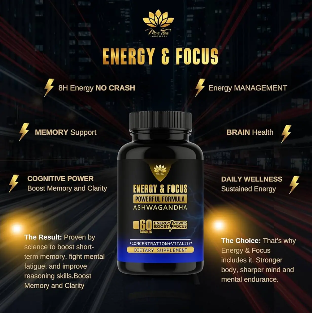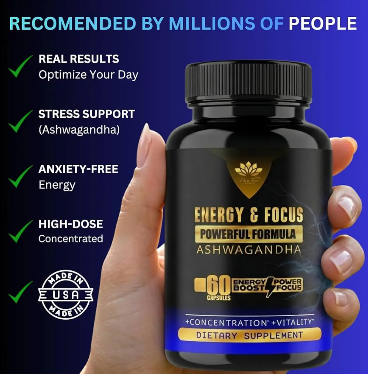 ·Concentrated Power, Real Doses for Real Results Stop paying for formulas that offer a lot of ingredients but zero effect. Energy & Focus is built on concentration, not confusion. We fill our capsules to the limit with high-potency Ashwagandha, Creatine, and Caffeine, ensuring your body receives the optimal daily requirement for peak performance. We chose quality over profit margins so you can feel the difference from day one.