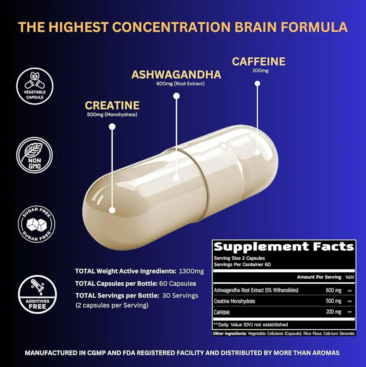 ·PREMIUM & PURE INGREDIENTS: Crafted with high-quality, scientifically-backed ingredients including natural Ashwagandha, Creatine, and Caffeine. NON-GMO, no artificial fillers, ensuring purity and effectiveness.