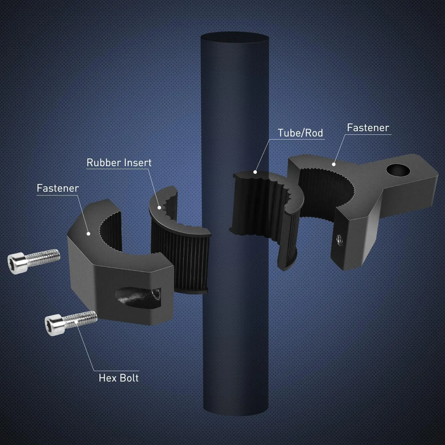 Rubber inserts/strip are designed with edges to fit perfectly and grip securely with the thread of inside clamp. Making installation easier and always protecting the metal from being worn down
