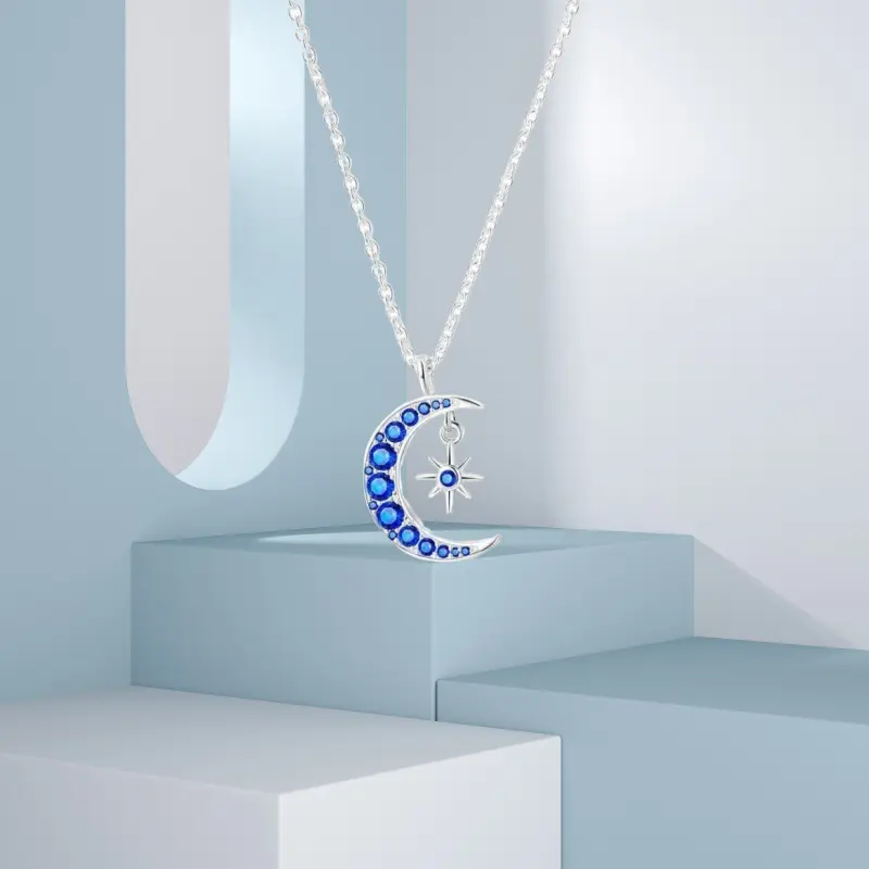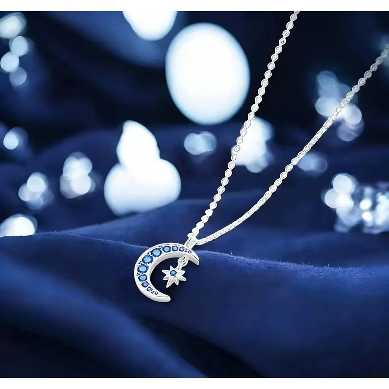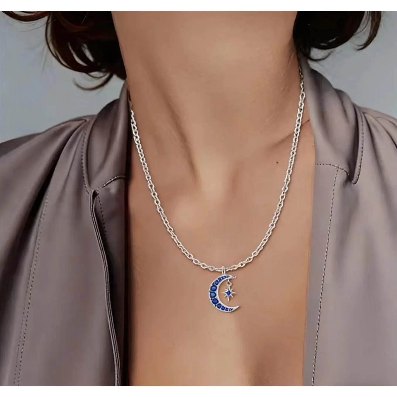 Elevate your style with this Blue Zircon Crescent Moon Charm Necklace. Inspired by the night sky, it's a celestial gift for her. The lunar moon jewelry features a blue zircon crescent moon and a star charm. Perfect for those who dream among the stars.