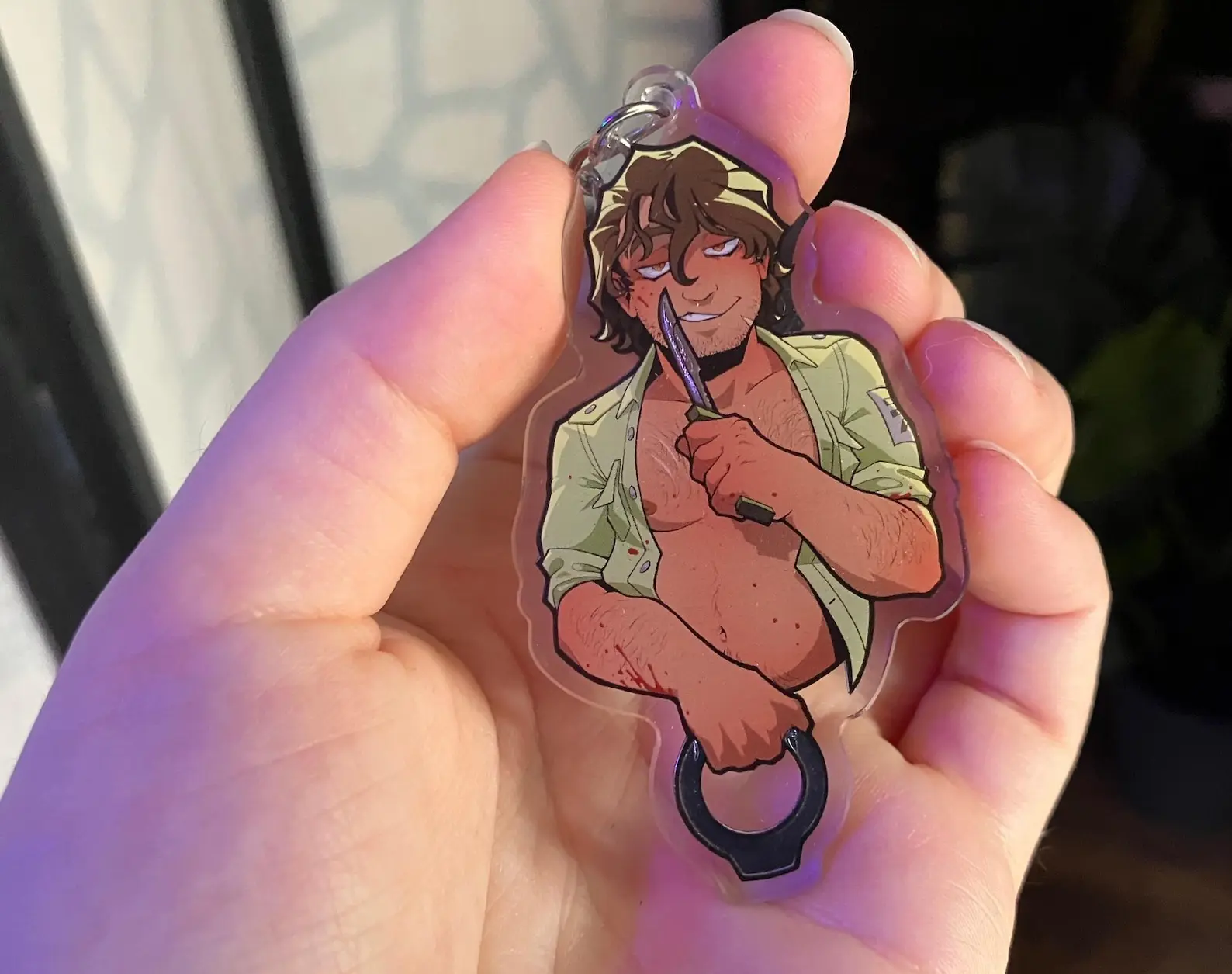 Elevate your style with our Keychain! Available in three sizes — 2''x2'', 3''x3'', and 3.5''x3.5'' — these keychains are designed to stand out. Crafted from acrylic, they offer a striking visual appeal and durability. The sturdy keyring ensures secure attachment, keeping your keys organized. Perfect for bags, keys, or gifts.