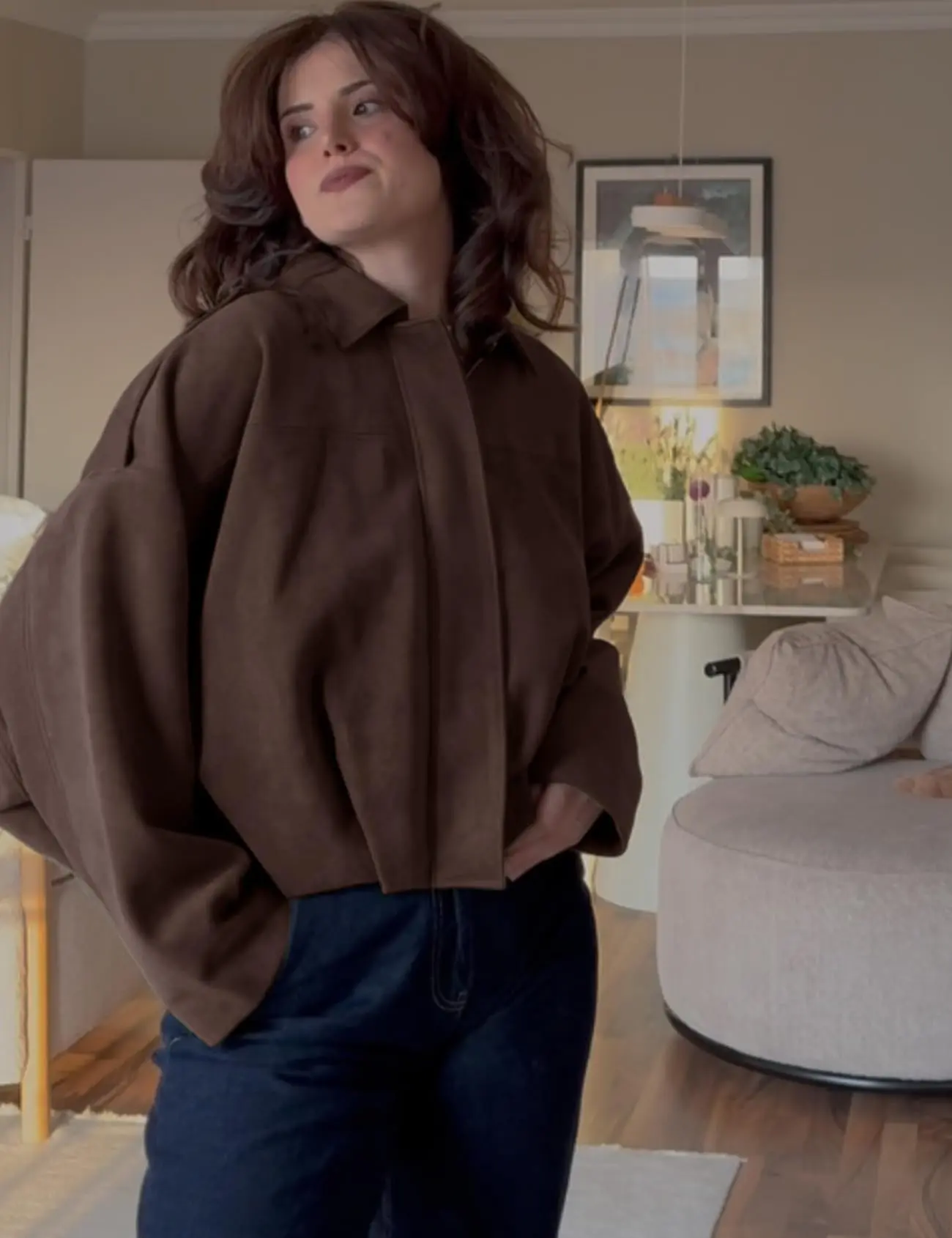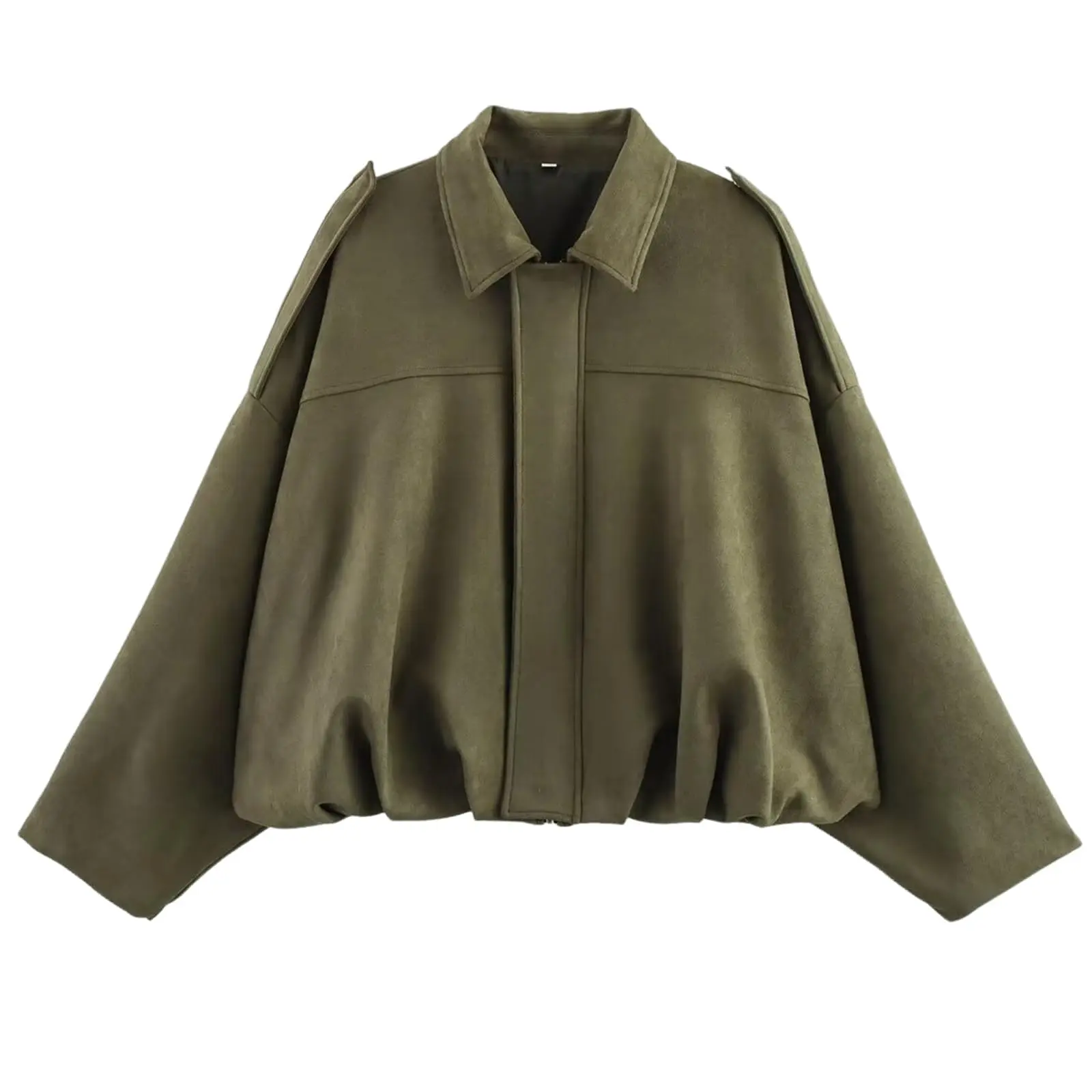 ·Design: Womens faux suede jacket, solid color, lapel collar, bat sleeve, shoulder straps, dropped shoulders, pleated hem, oversized, streetwear pilot jacket, fashionable and classic, a must-have coat in your 2025 wardrobe.